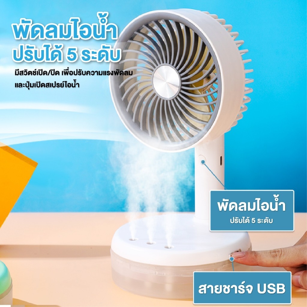 พัดลม ทำความชื้น 2in1 พัดลมไอเย็นพกพา รุ่นใหม่อัพเดท 2024 พัดลมไอน้ำ USB เสียงรบกวนต่ำ พัดลมตั้งโต๊ะ