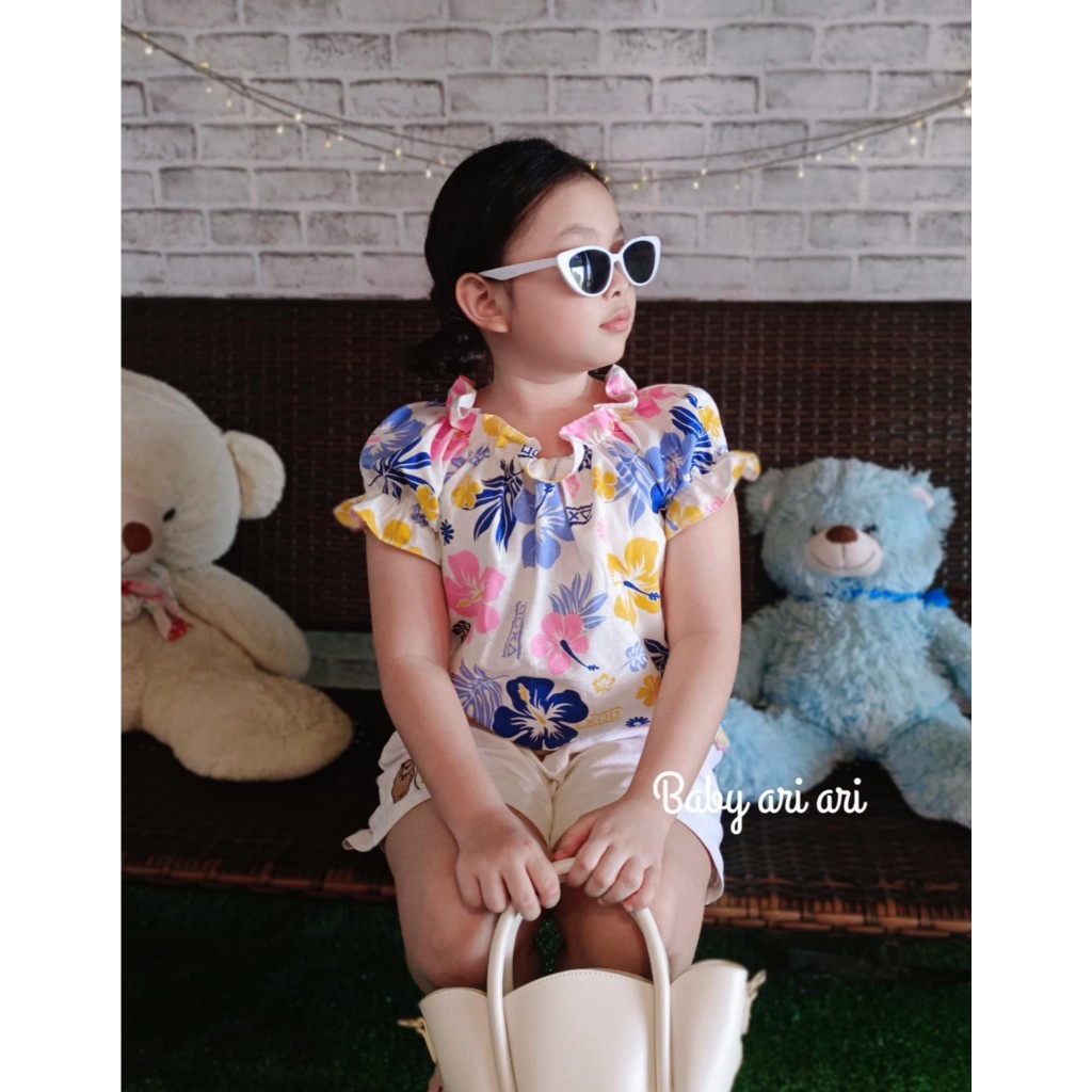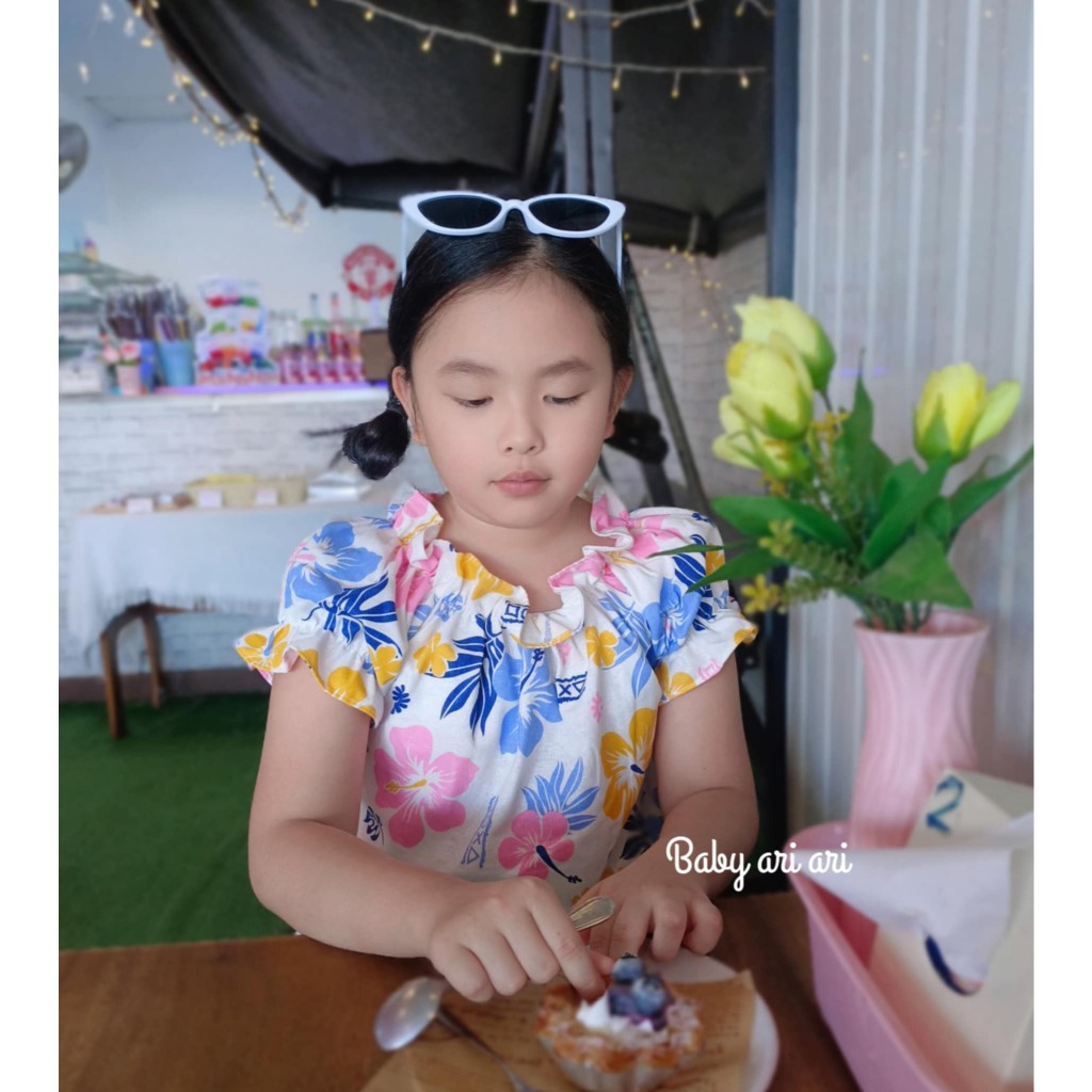 เสื้อลายดอกสงกรานต์เด็ก พร้อมส่ง ทรงแขนตุ๊กตาน่ารักมาก