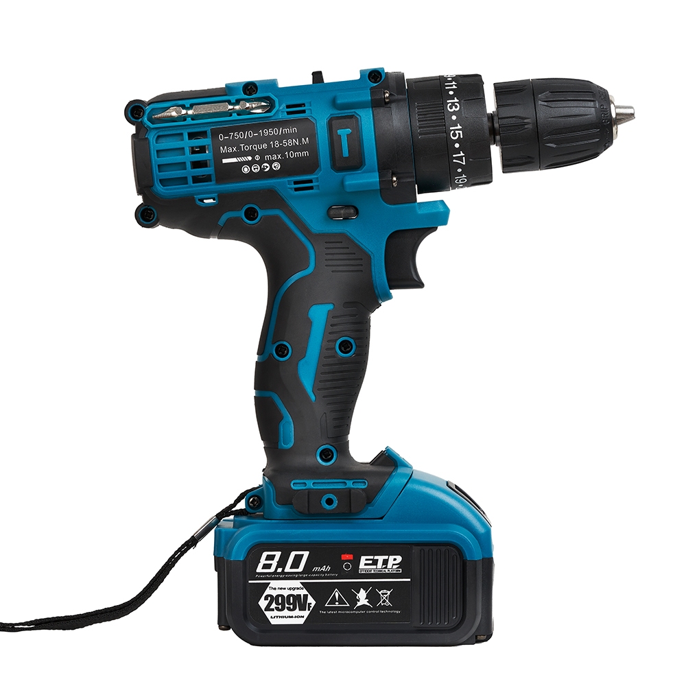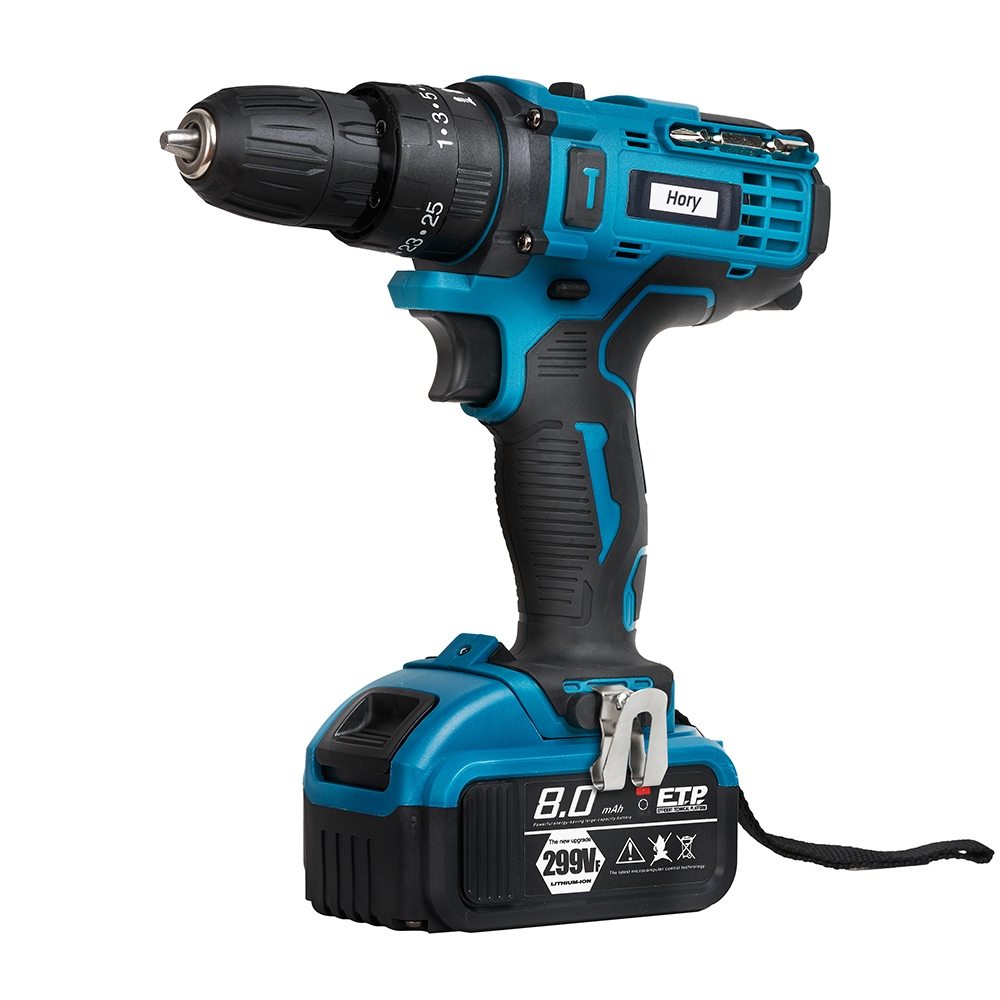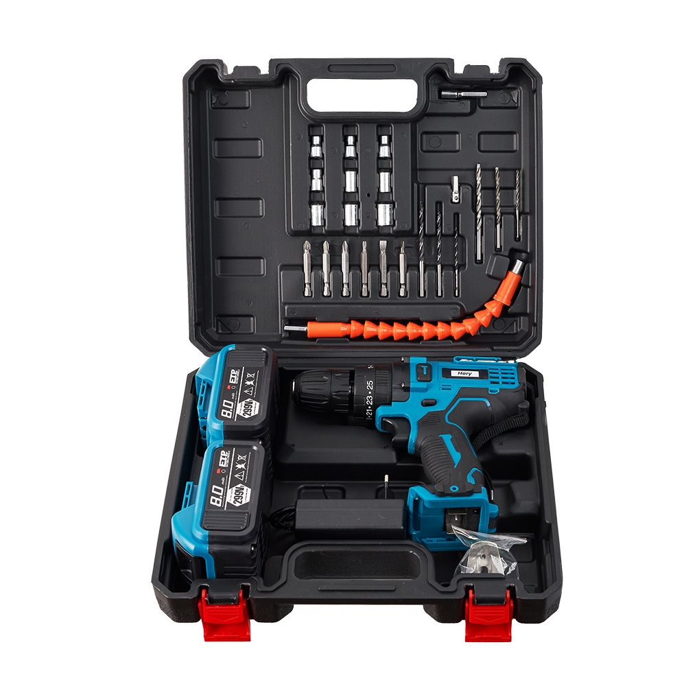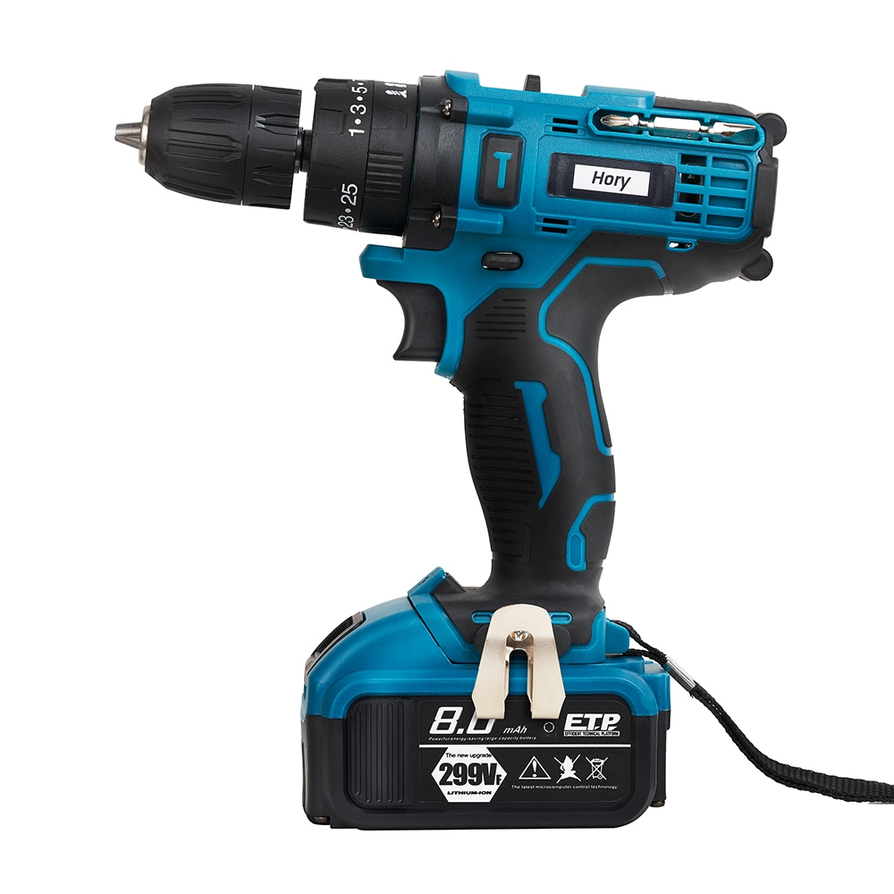 HORY สว่านไร้สาย 299V รุ่นใหม่ล่าสุด สว่านกระแทก 3 ระบบ มีระบบกระแทก แบตเตอรี่ 2 ก้อน สว่าน รวม 32ชิ้น รุ่น H-09 สีฟ้า