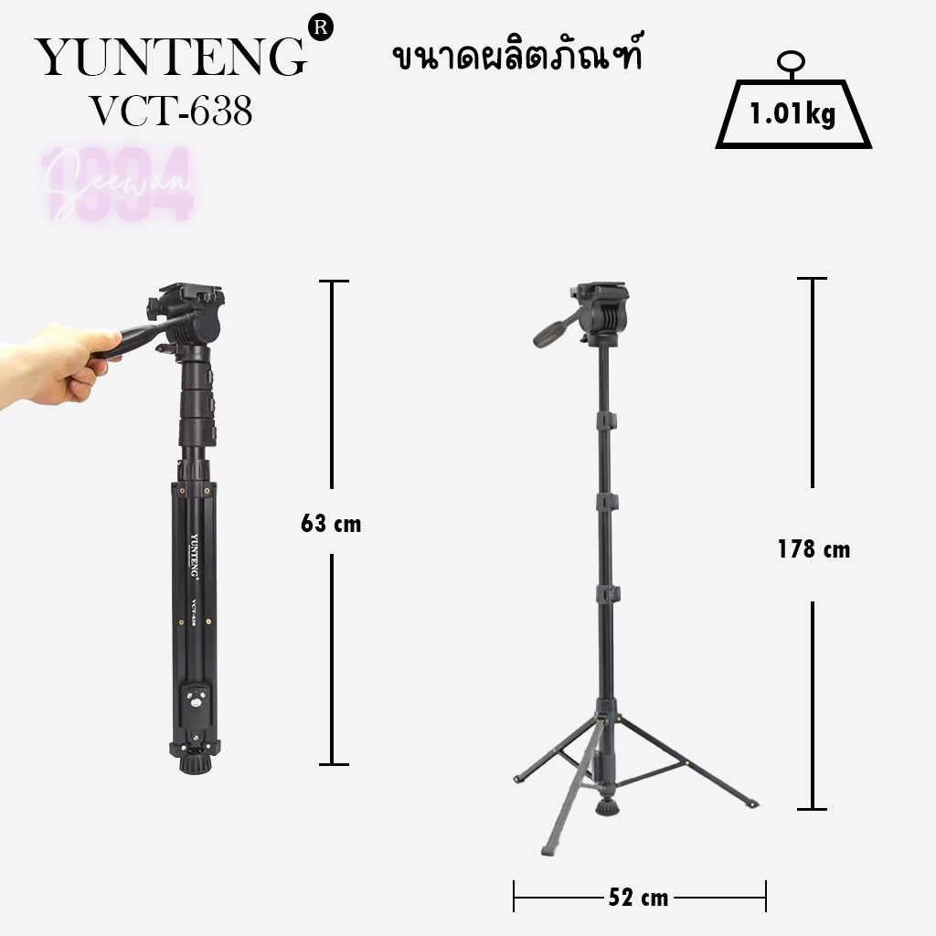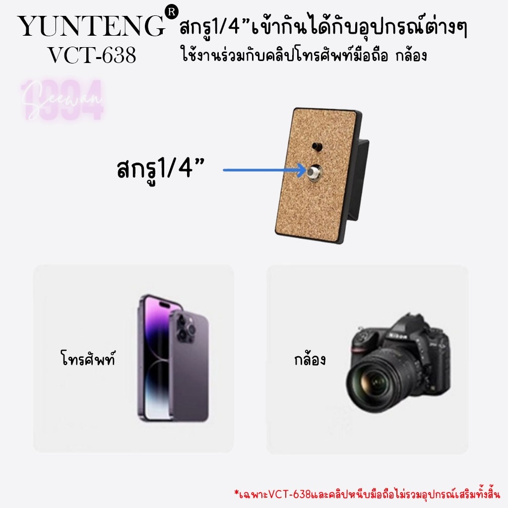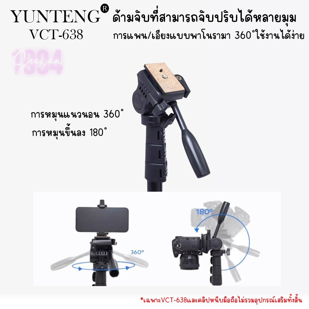 ขาตั้งกล้อง YUNTENG VCT-638 Video Tripod ขาตั้งกล้อง แบบ 3 ขา รับน้ำหนักได้ 3kg แถมคลิปหนีบมือถือ พร้อมรีโมทชัตเตอร์