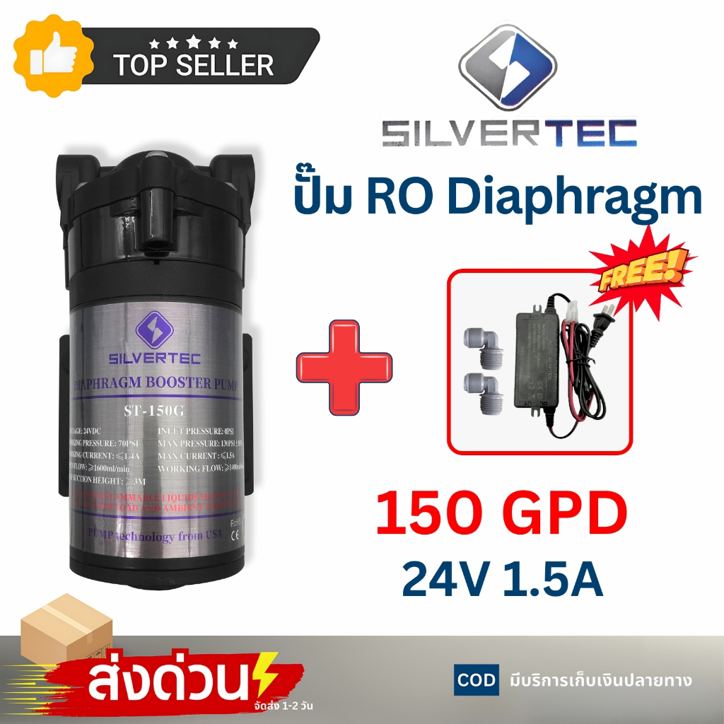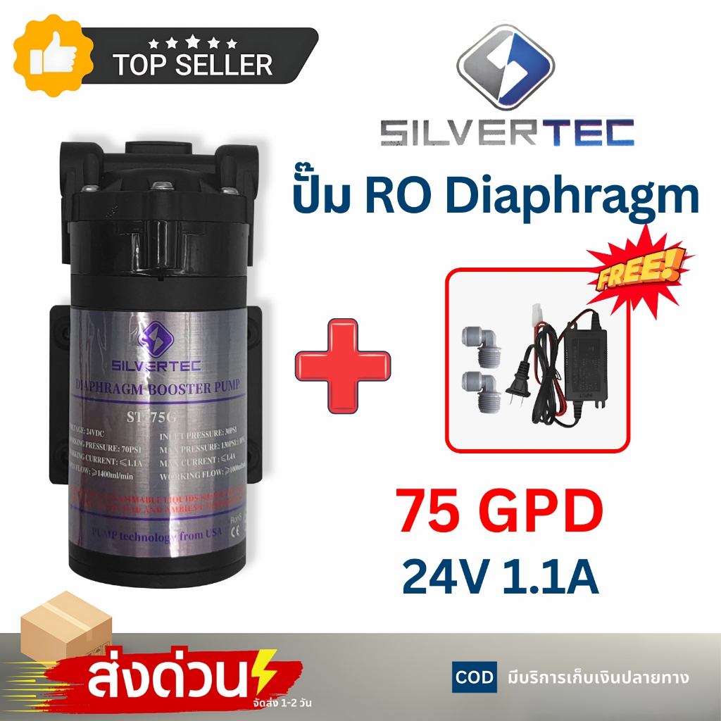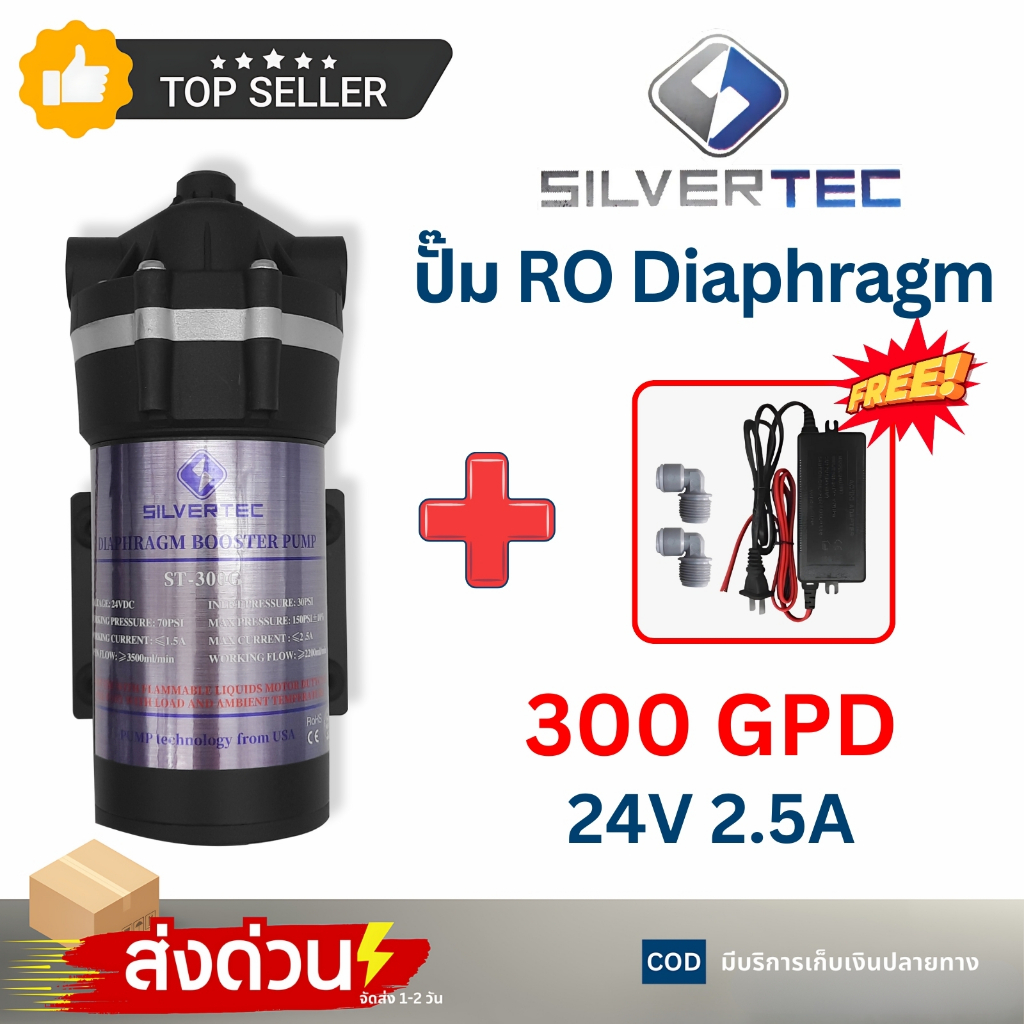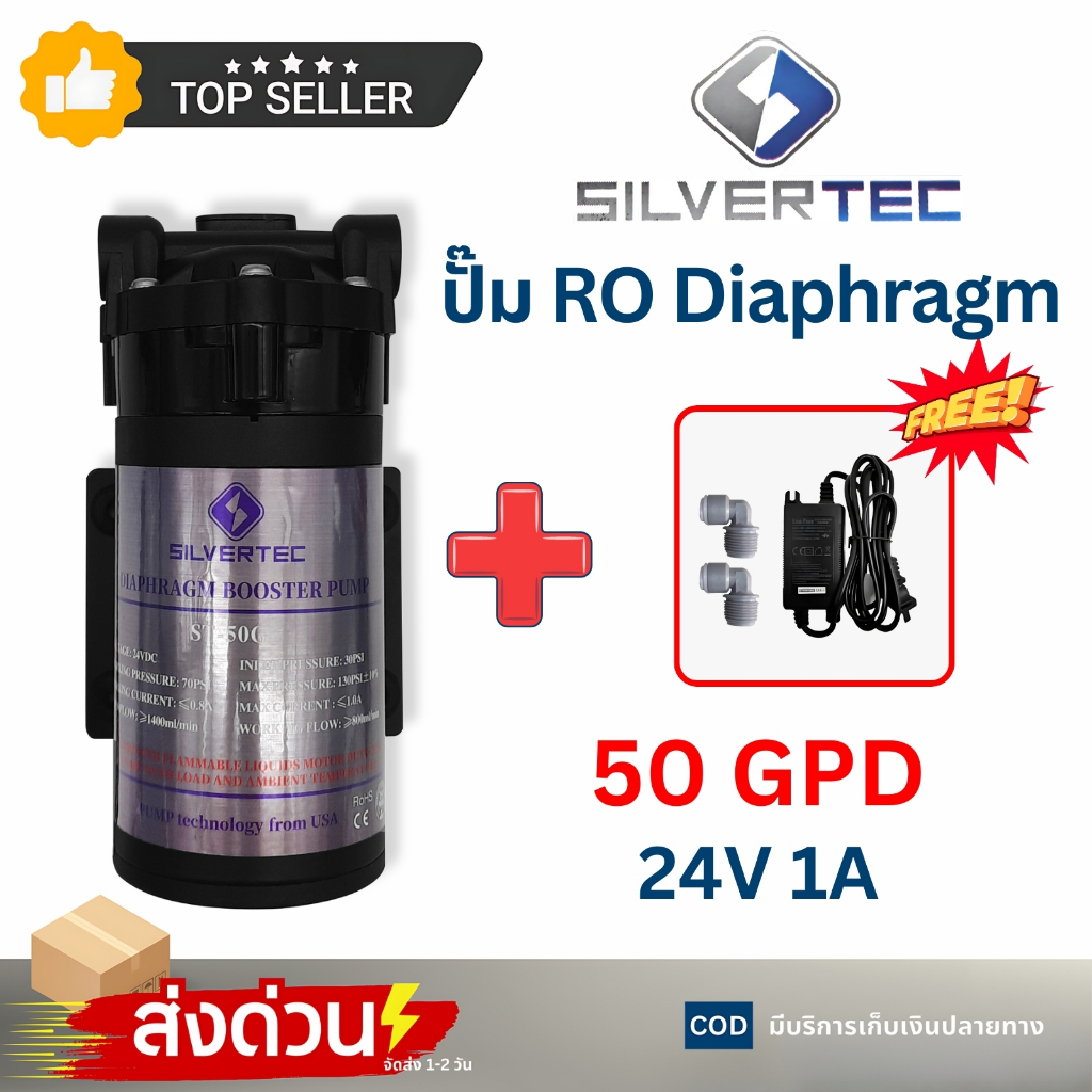 ปั๊มไดอะแฟรม SILVERTEC 50 75 150 300GPD Diaphragm Pump RO ปั๊มเครื่องกรองน้ำ หัวเสียบ อุปกรณ์ครบชุด