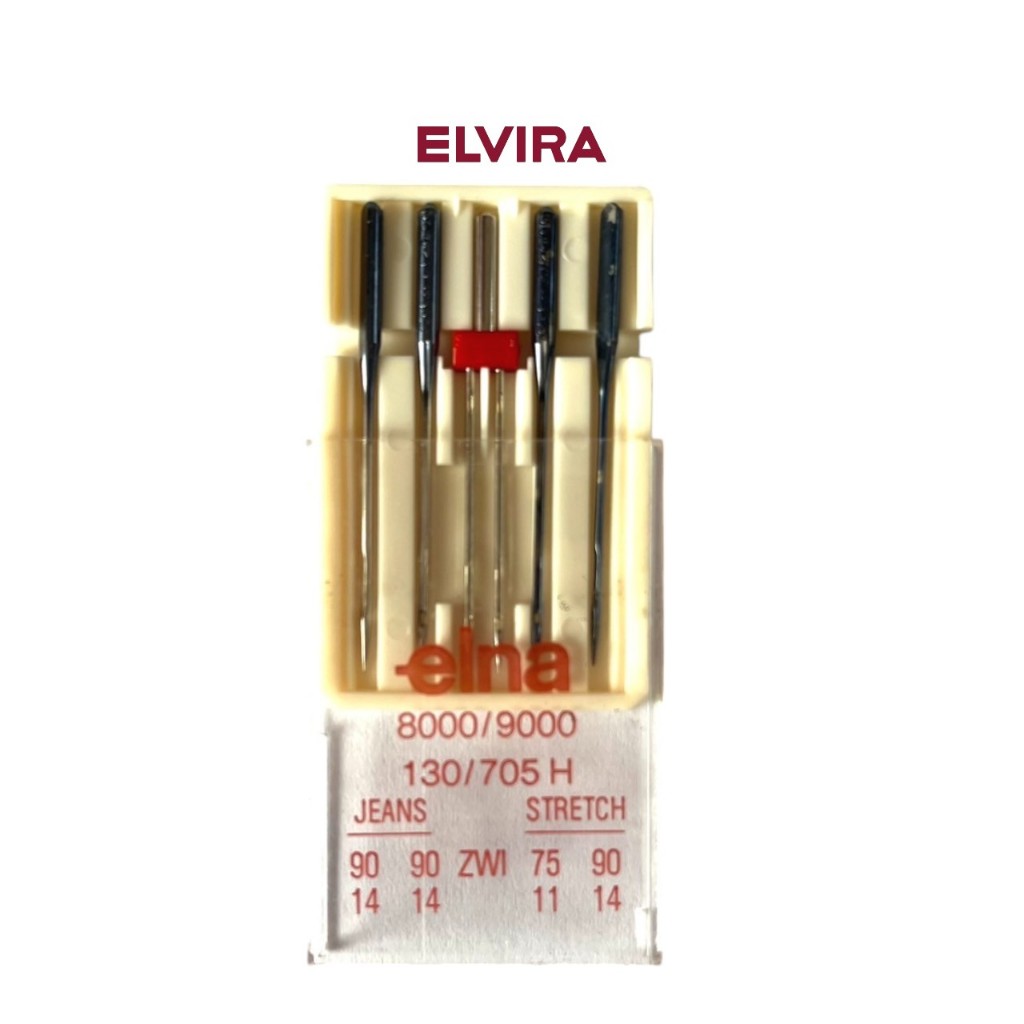 เข็มเย็บผ้ารวม 3 ชนิด Elvira เข็มเย็บผ้ายีนส์ NO.90 /เข็มคู่ /เข็มเย็บผ้ายืดNO.75,90