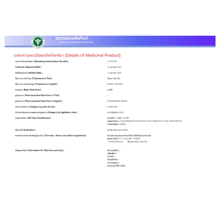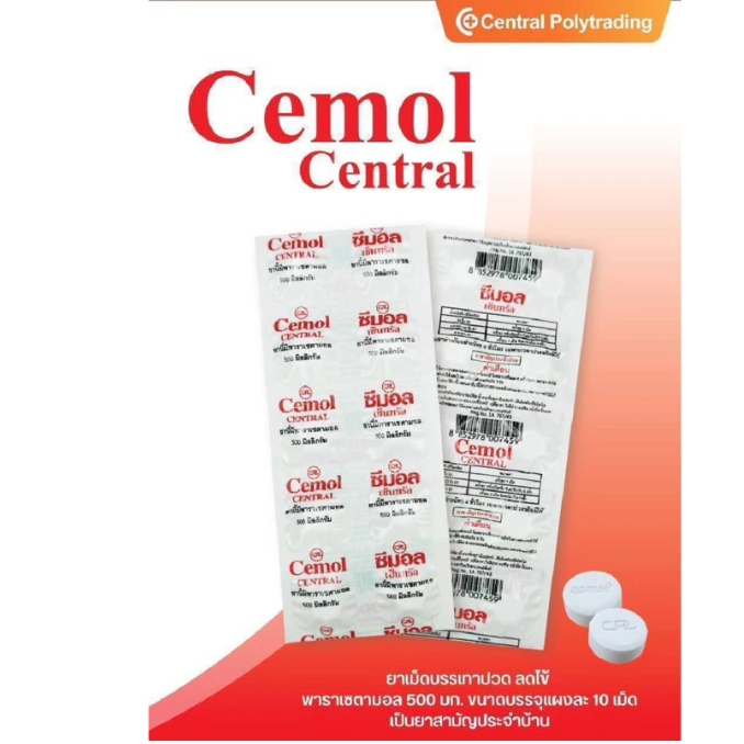 #ยกลัง 10 กล่อง ซีมอล เซ็นทรัล พาราเซตามอล 500 มก. ยาเม็ดบรรเทาปวด ลดไข้ ขนาดบรรจุ 50x10's Cemol central paracetamo