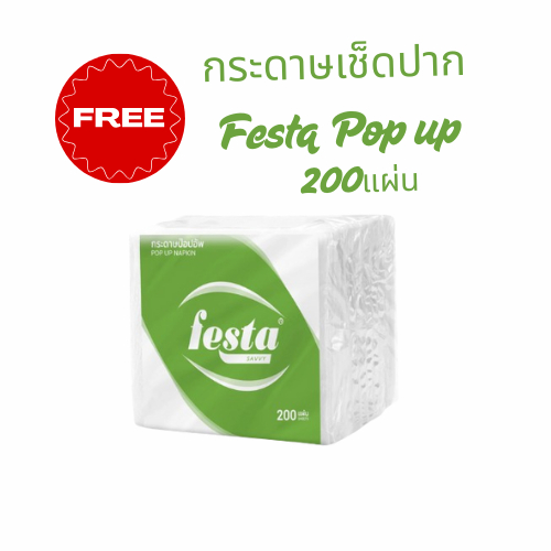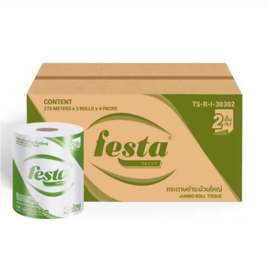 โปรแถม ! กระดาษชำระม้วนใหญ่ Festa Besta JRT หนา 2 ชั้น 275 เมตร แถมฟรีกระดาษ Pop up เช็ดปาก 200 แผ่น