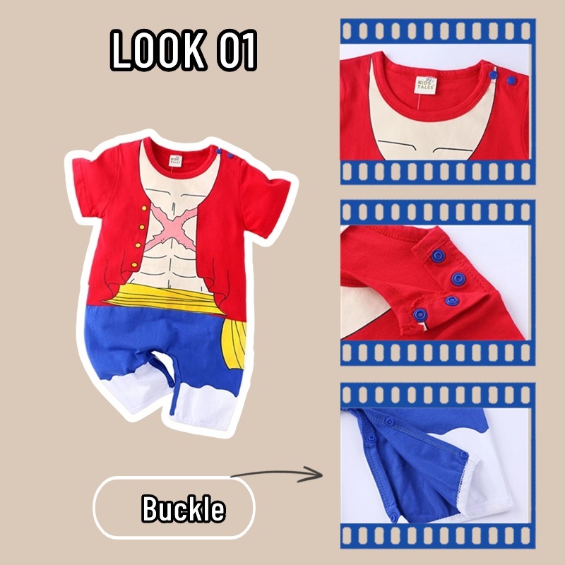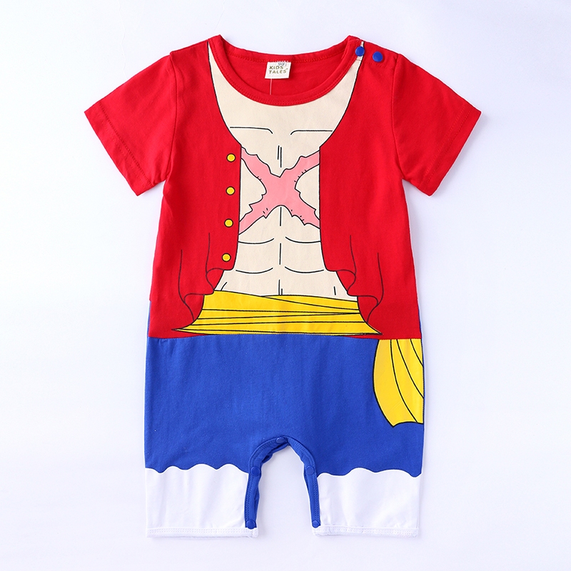 พร้อมส่ง ชุดจั๊มสูทรอมเปอร์ คอกลม แขนสั้น ผ้าฝ้าย พิมพ์ลายการ์ตูนวันพีชน่ารัก สําหรับเด็กทารกแรกเกิด 0-18 เดือน