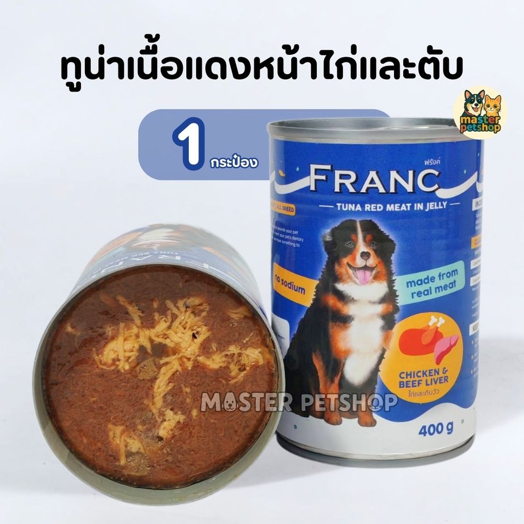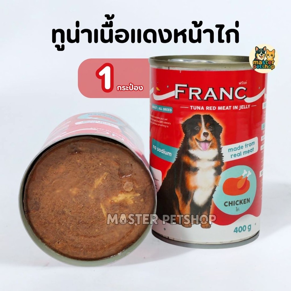 FRANC อาหารเปียกสุนัข อาหารสุนัขส่งฟรี 1 กระป๋อง ทูน่าเนื้อเเดงในเยลลี่ 400 กรัม (เก็บโค้ดหน้าร้าน)