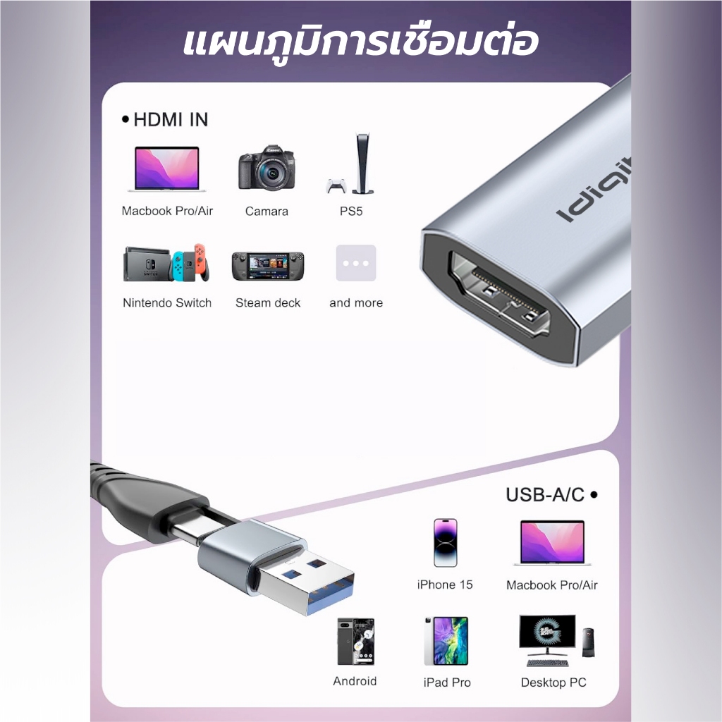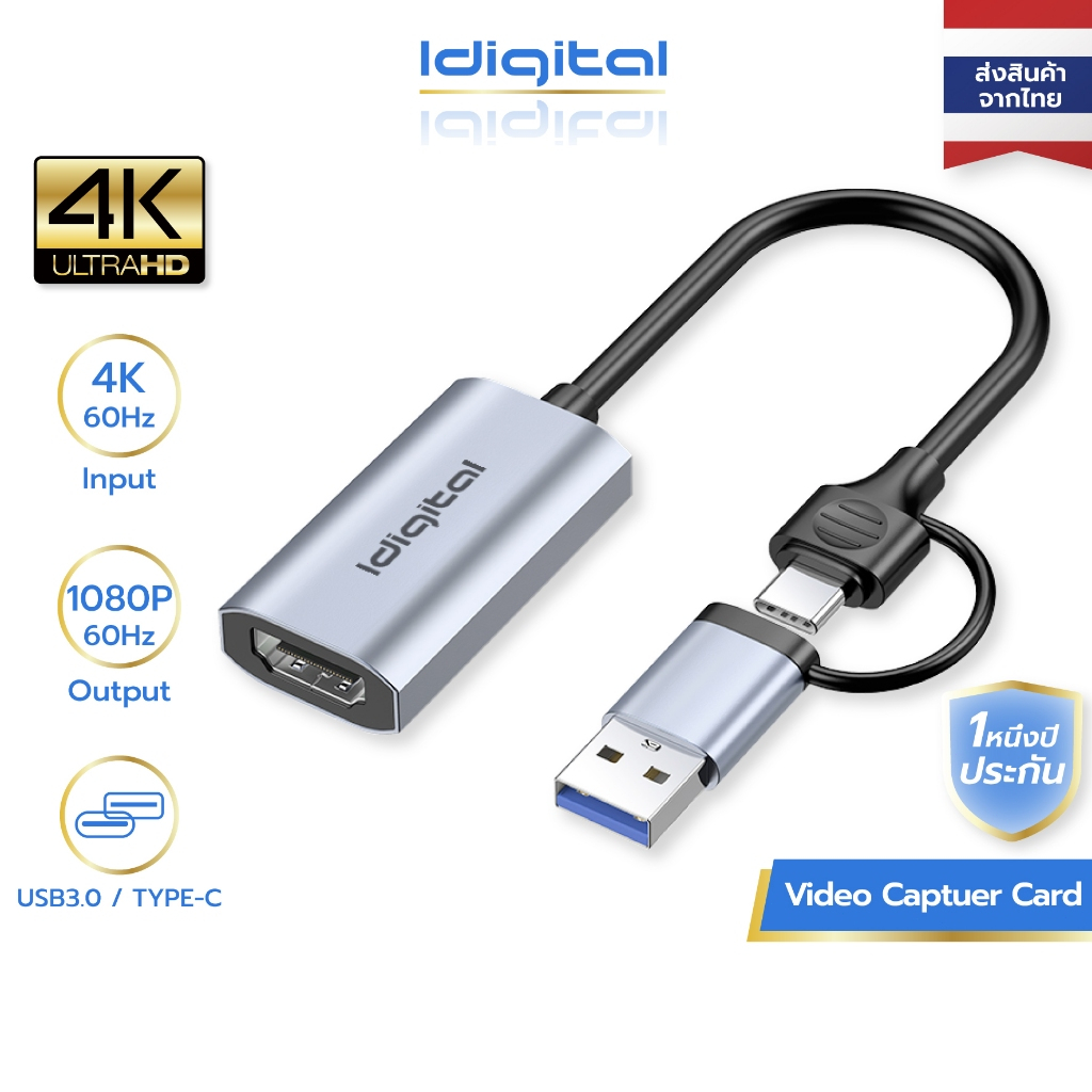 ⚡ส่งจาก กทม⚡Idigital การ์ดจับภาพวิดีโอ Video Capture Card, Type-C / USB3.0, 4K@60Hz, การบันทึกวิดีโอความละเอียดสูง