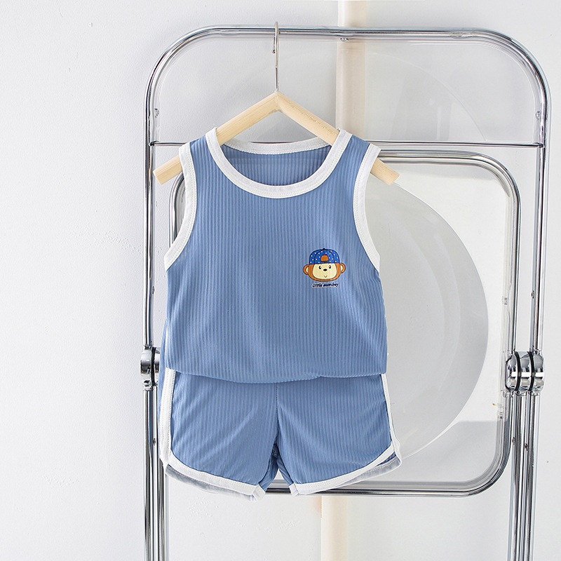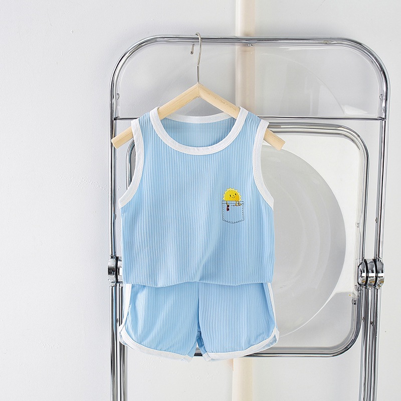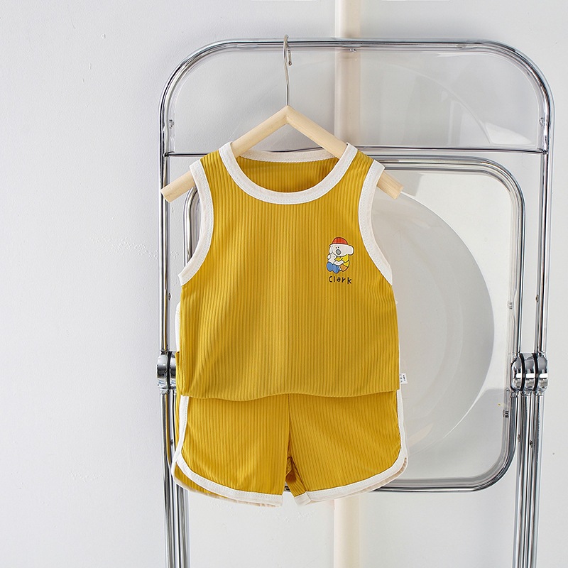 ชุดเสื้อกล้ามเด็ก ชุดเซ็ตสองชิ้นเด็ก ระบายอากาศ ผ้าบาง ทำขอบสี พร้อมส่ง