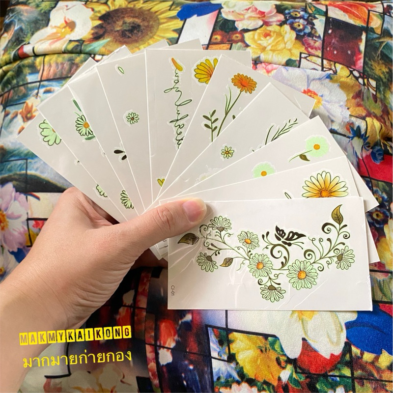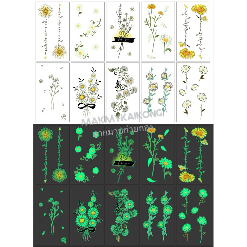 แทททู *พร้อมส่ง* แทททูกันน้ำ แพ็คละ 10 แผ่น ดอกทานตะวัน เดซี่ เรืองแสง ราคาน่ารัก ลอกออกง่าย