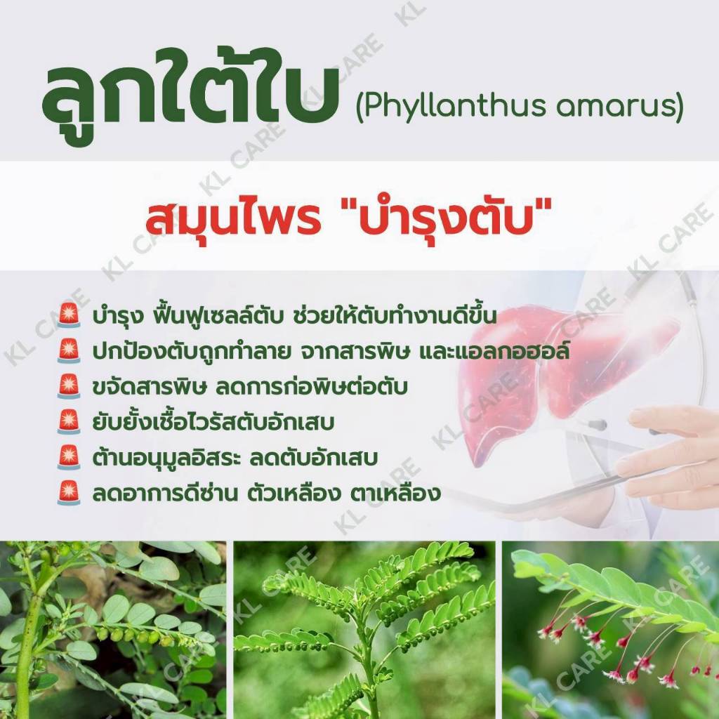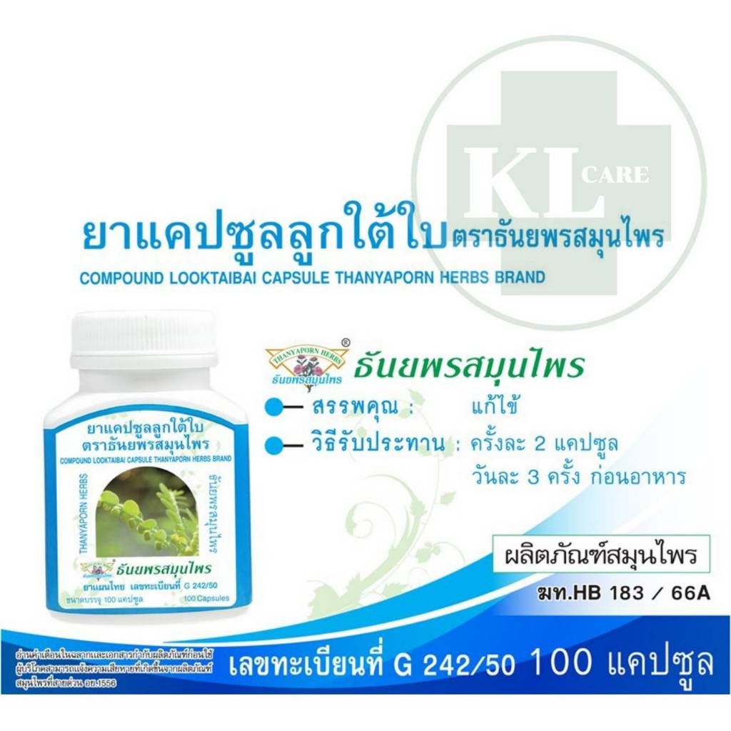 ยาสมุนไพร ลูกใต้ใบ ลดไข้ บำรุงตับ ธันยพรสมุนไพร 100 แคปซูล ของแท้
