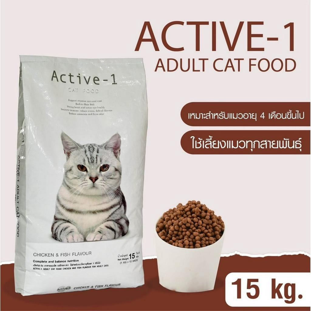 Active-1 แอคทีฟวัน อาหารเม็ดแมว เกรดพรีเมี่ยม ไม่เค็ม โซเดียมต่ำ ยกกระสอบ 14-15 kg