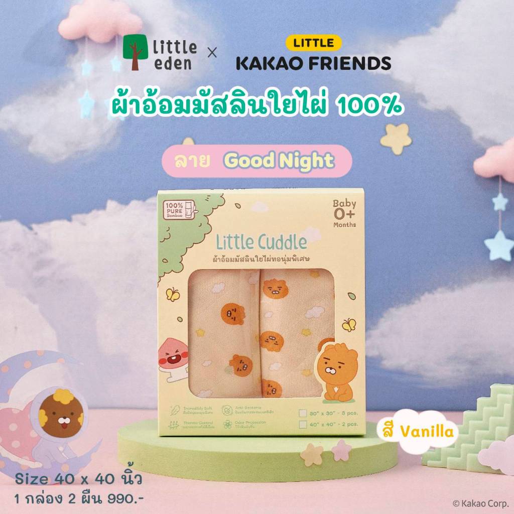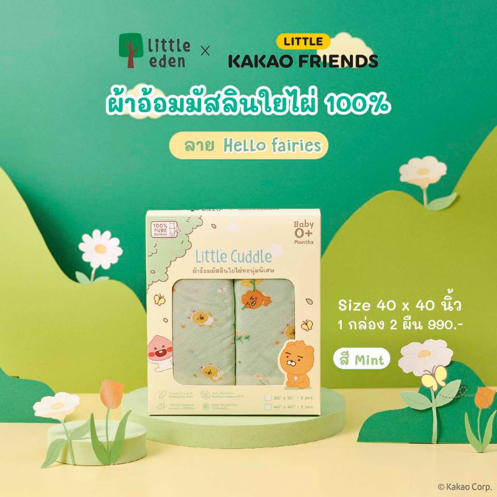 Little Eden x Little Kakao Friends - ผ้าอ้อมเด็กใยไผ่ 100% (40 x 40 นิ้ว)