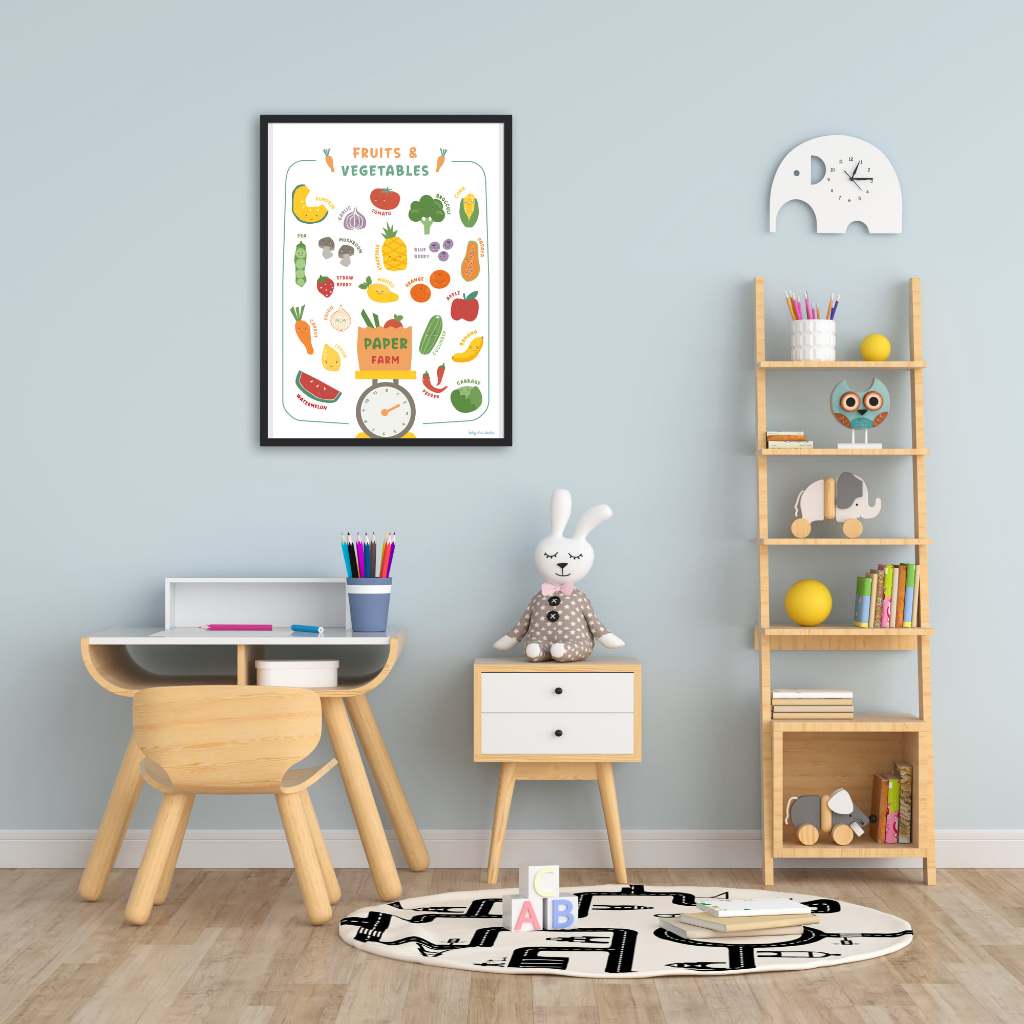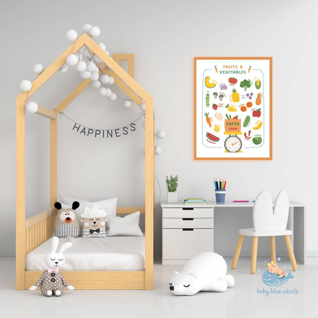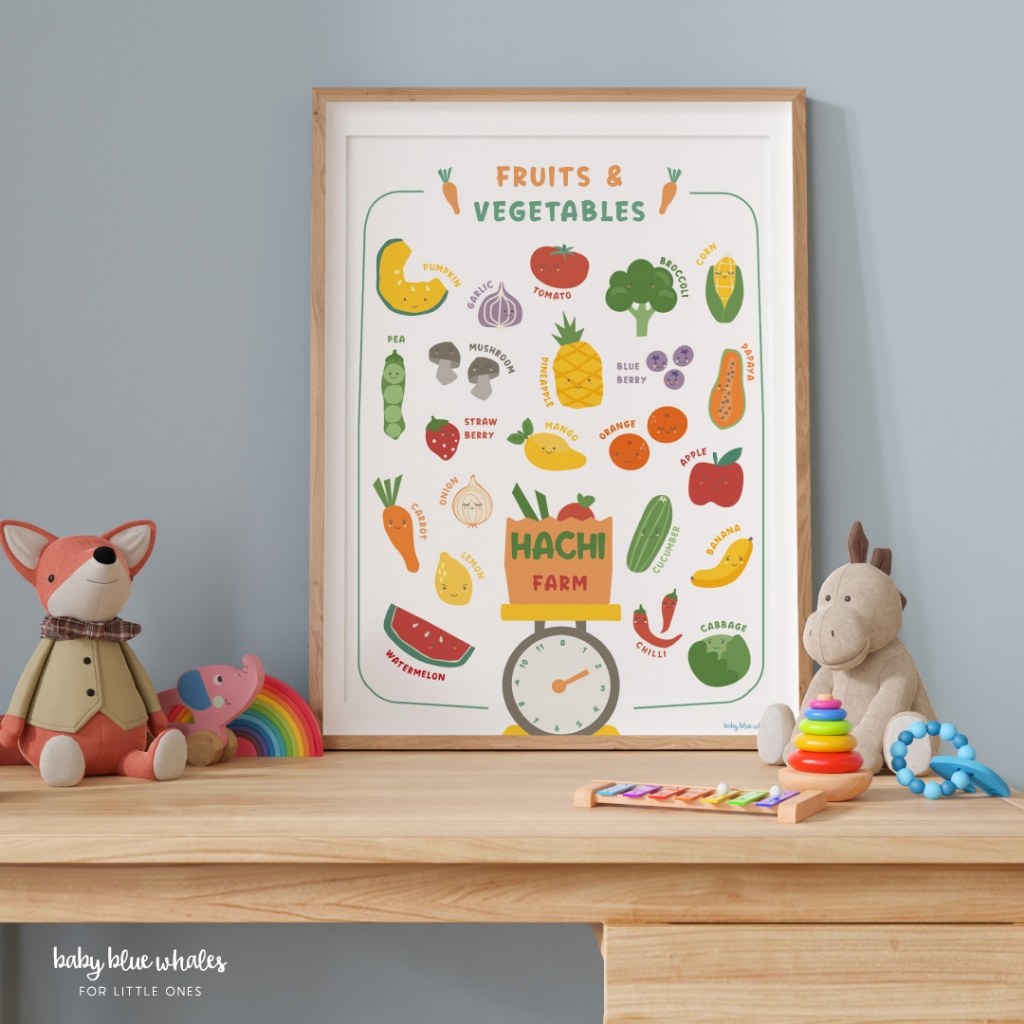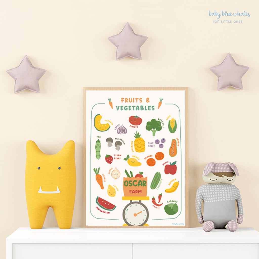 Baby Blue Whales โปสเตอร์เด็ก ผักและผลไม้ ใส่ชื่อได้ / Personalized Fruits & Vegetables Poster [Pre-Order 7-14 วัน]