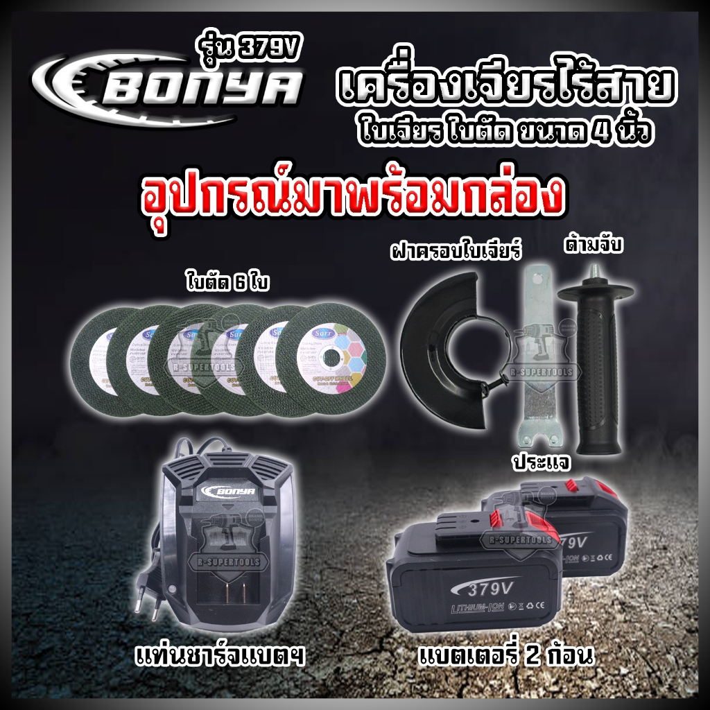 เครื่องเจียรไร้สาย BONYA รุ่น 379Vมอเตอร์บลัลเลช+ของอุปกรณ์แบบครบเซ็ท