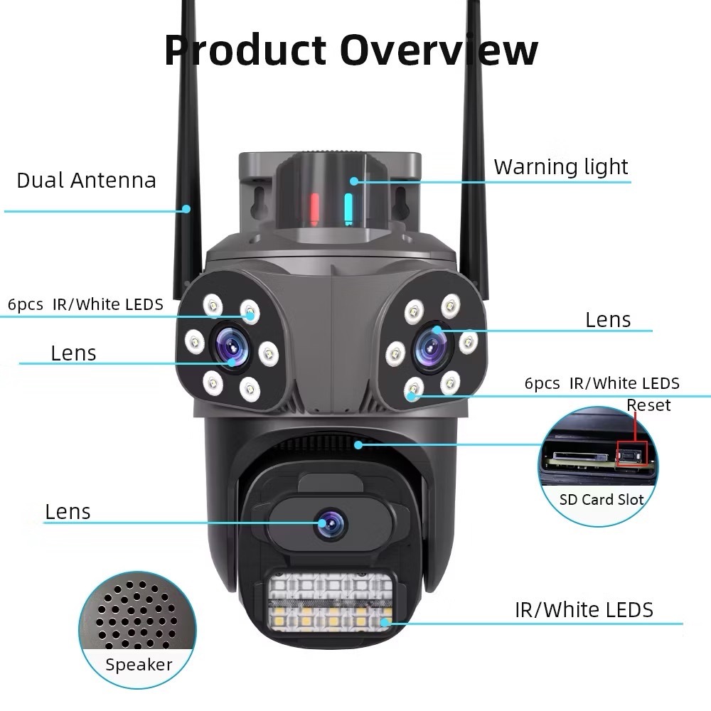 ICSEE 6K 3 เลนส์ WIFI กล้องวงจรปิดไร้สายกลางแจ้งกันน้ำ 12 ล้านพิกเซลคืนวิสัยทัศน์กล้องรักษาความปลอดภัยติดตามไฟเตือนสว่าง