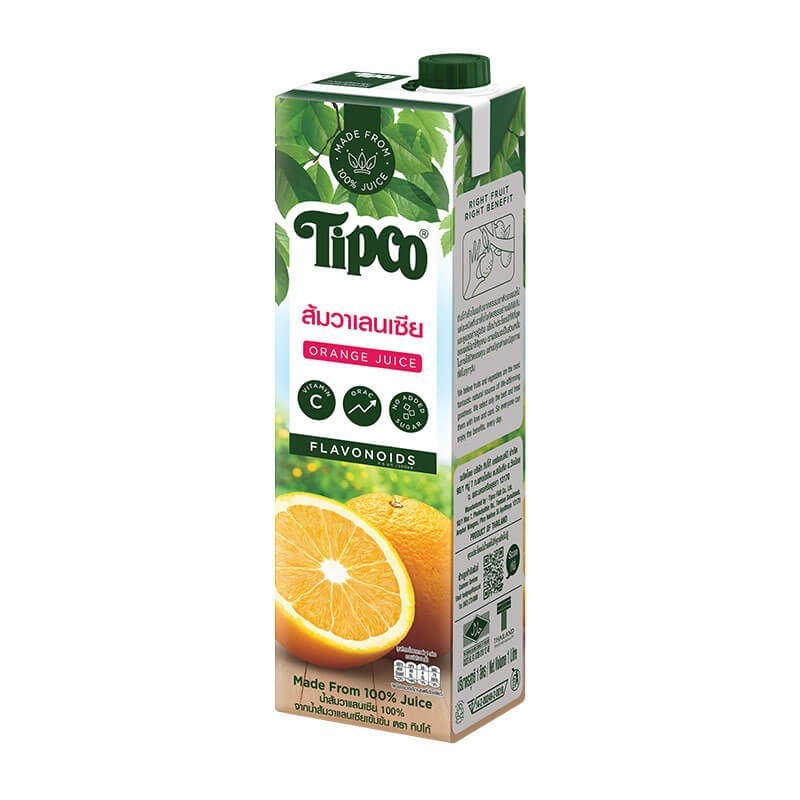TIPCO น้ำส้มวาเลนเซีย Valencia Orange juice 100% ขนาด 1000 มล.