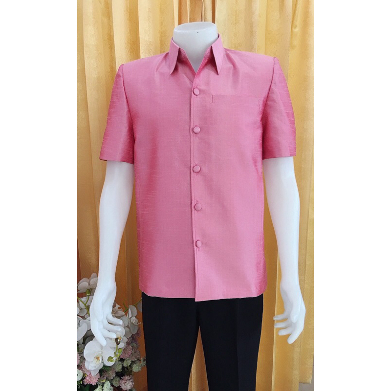 เสื้อซาฟารีชายไหมแพรทิพย์(ซับไหล่อัดผ้ากาวทั้งตัว) เสริมไหล่ กระเป๋าบน และข้างซ้ายขวา