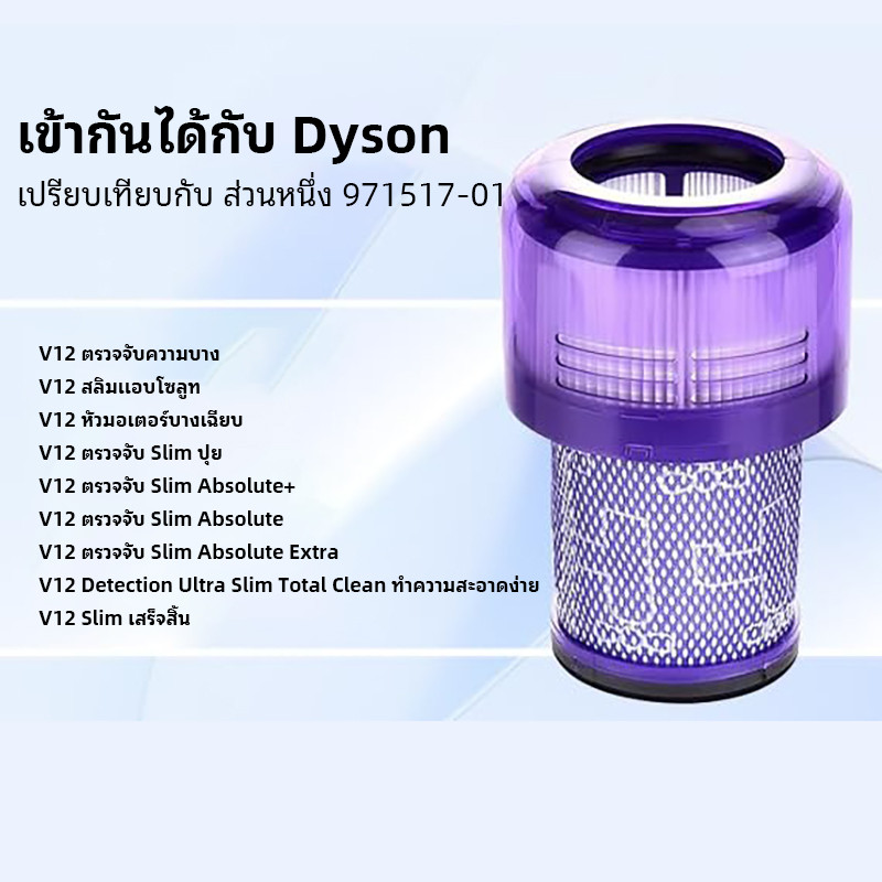 ตัวกรอง 3 แพ็คสําหรับ Dyson V12 Detect Slim, V12 Slim Absolute, V12 Slim Motorhead, V12 Detect Slim Fluffy, 3 ตัวกรองและแปรงทําความสะอาด 1 ชิ้น, เปรียบเทียบพร้อมส่วน 971517-01