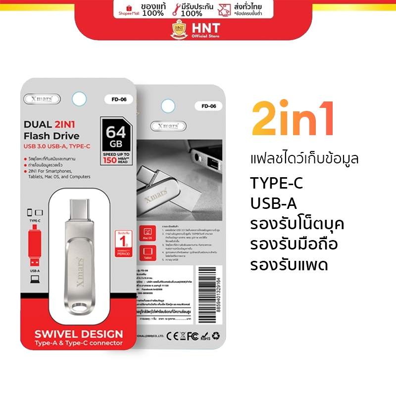 Xmars แฟลชไดร์ฟ 2 หัว 64GB 128GB Flash Drive Type-C Ultra Dual Drive USB A รุ่น FD-06 FD-07