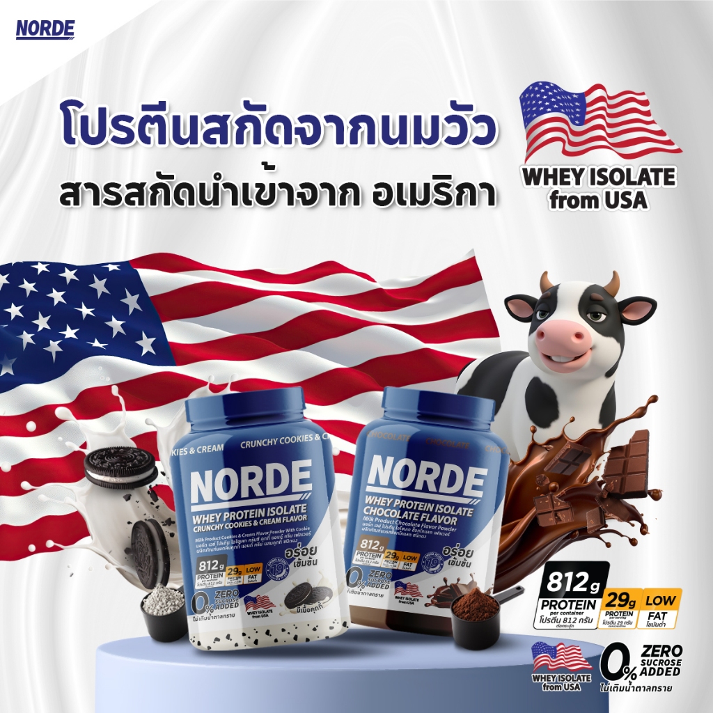 Norde Whey Protein Isolate นอร์ด เวย์โปรตีน ไอโซเลท อร่อย สูตรเข้มข้น เวย์โปรตีนคุณภาพ นำเข้าจากUSA