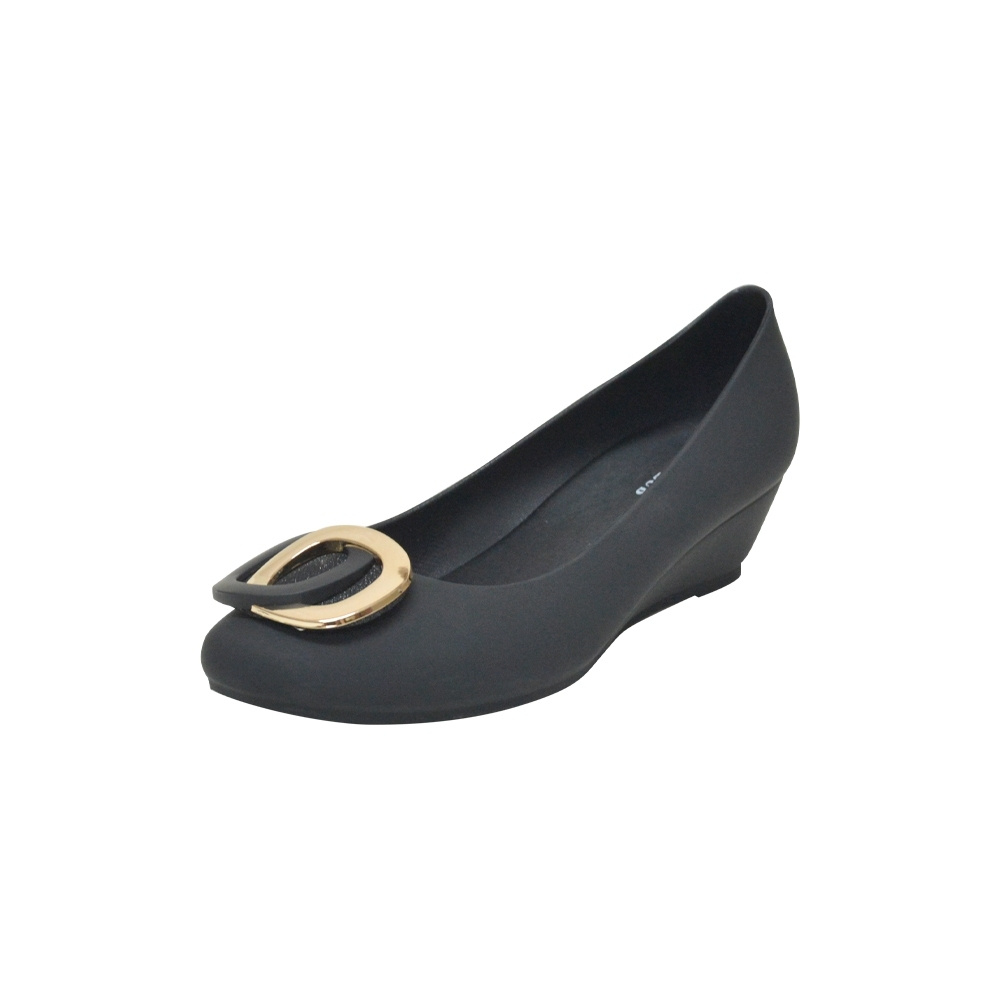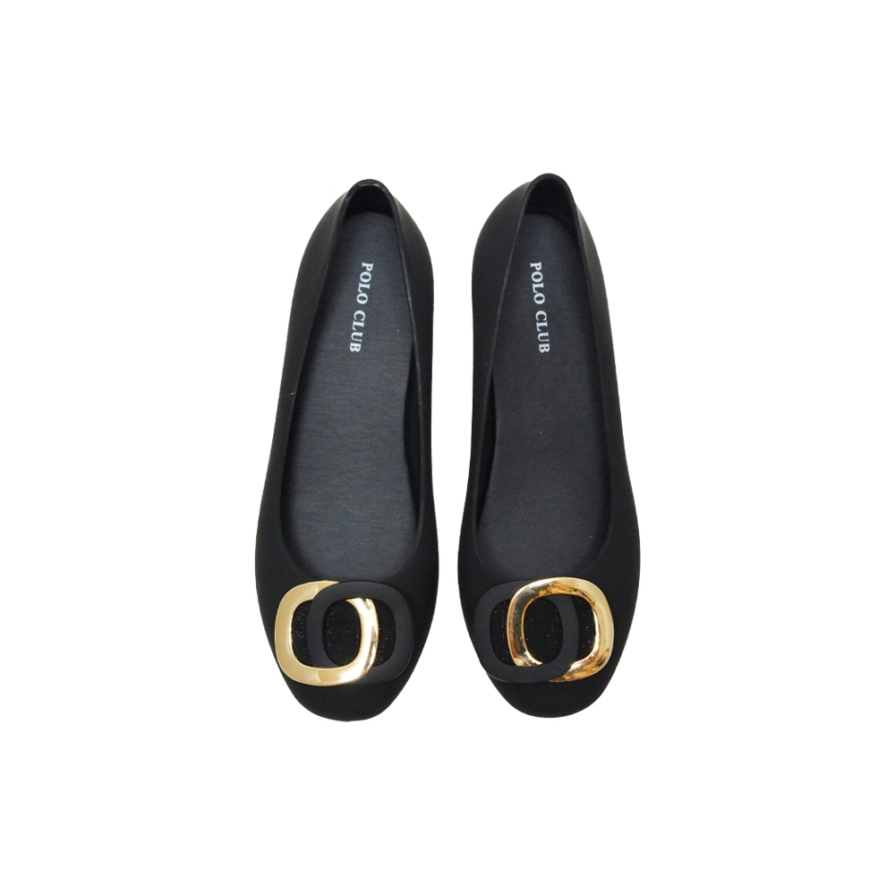 POLO CLUB รองเท้าคัทชู ยาง หัวมน ส้นเตารีด รุ่น JL-4010 สีดำ สูง 1.5 นิ้ว