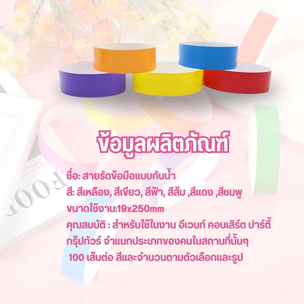 100pcs สายรัดข้อมือกระดาษ ริสแบนด์ กระดาษ กันน้ำ ฉีกไม่ขาด กระดาษหนาคุณภาพดีมาก ขนาด สายรัดข้อมือ สติ๊กเกอร์
