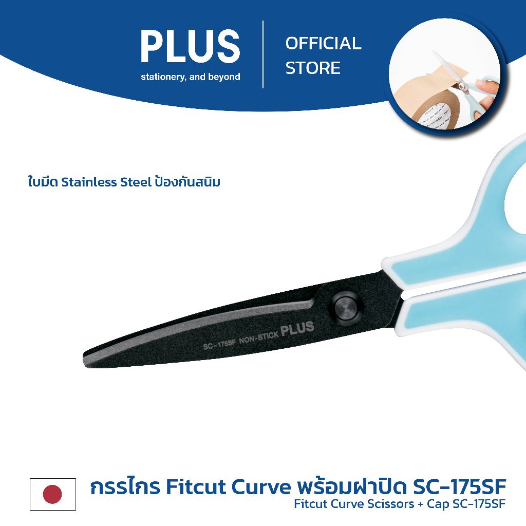 PLUS กรรไกรเคลือบพร้อมฝาปิด FITCUT CURVE SC-175SF