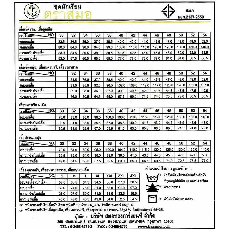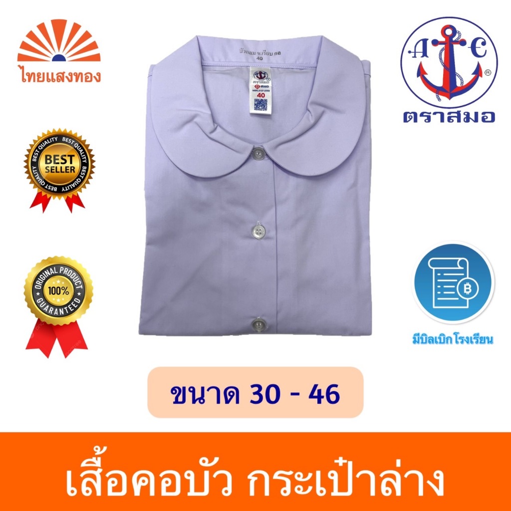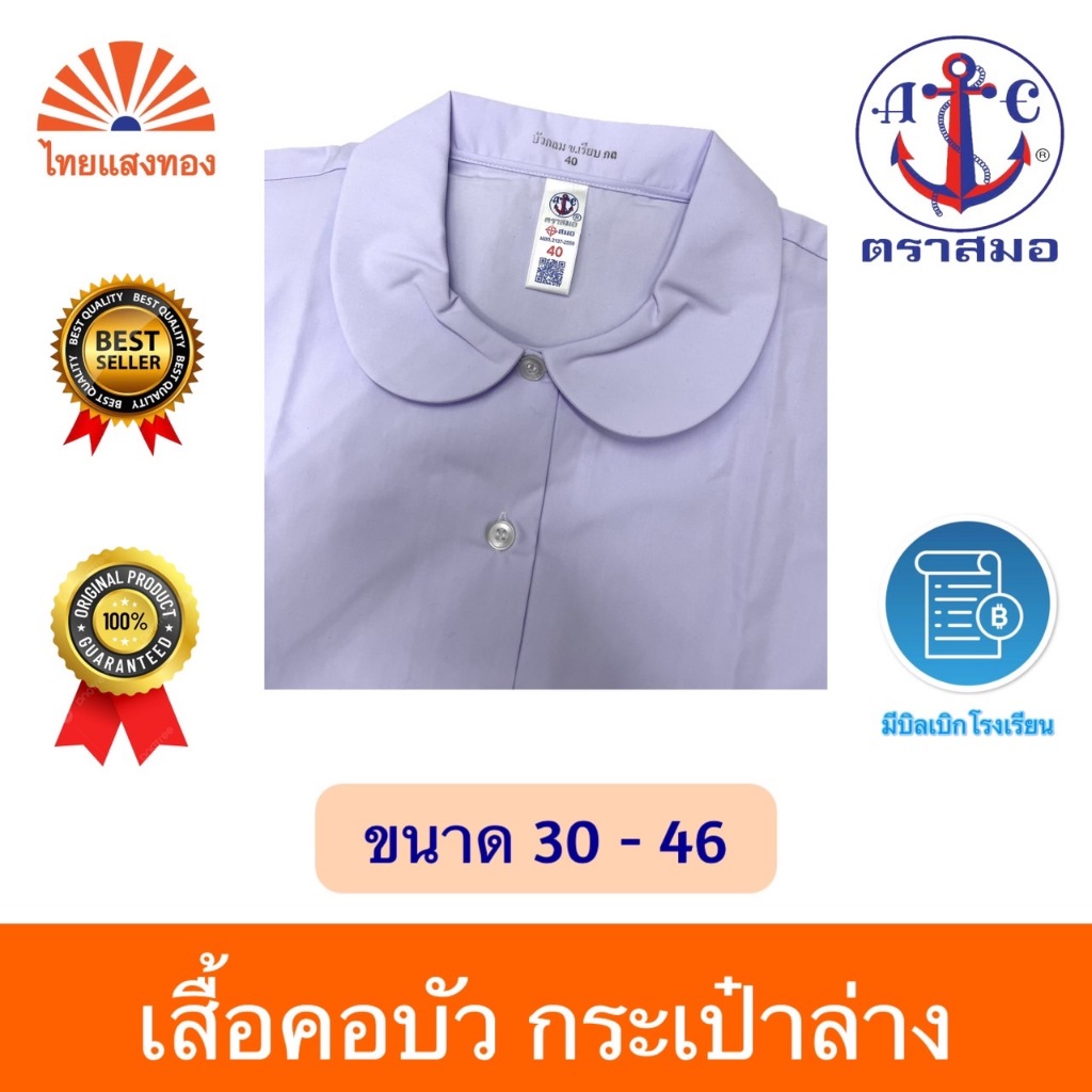 เสื้อนักเรียนคอบัวผ่าตลอด กระเป๋าล่าง ตราสมอ⚓️
