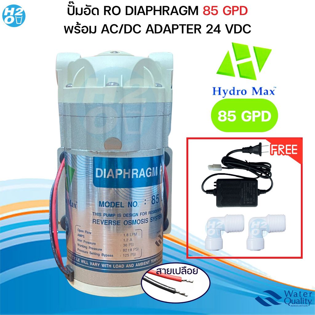 ปั๊มน้ำ HydroMax Diaphragm Pump RO 50 85 GPD ปั๊มอัด RO แถมหม้อแปลง 24V Hydro Max ปั๊มเครื่องกรองน้ำ