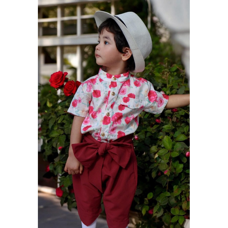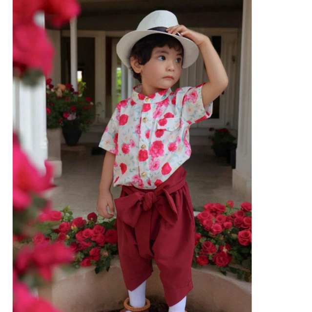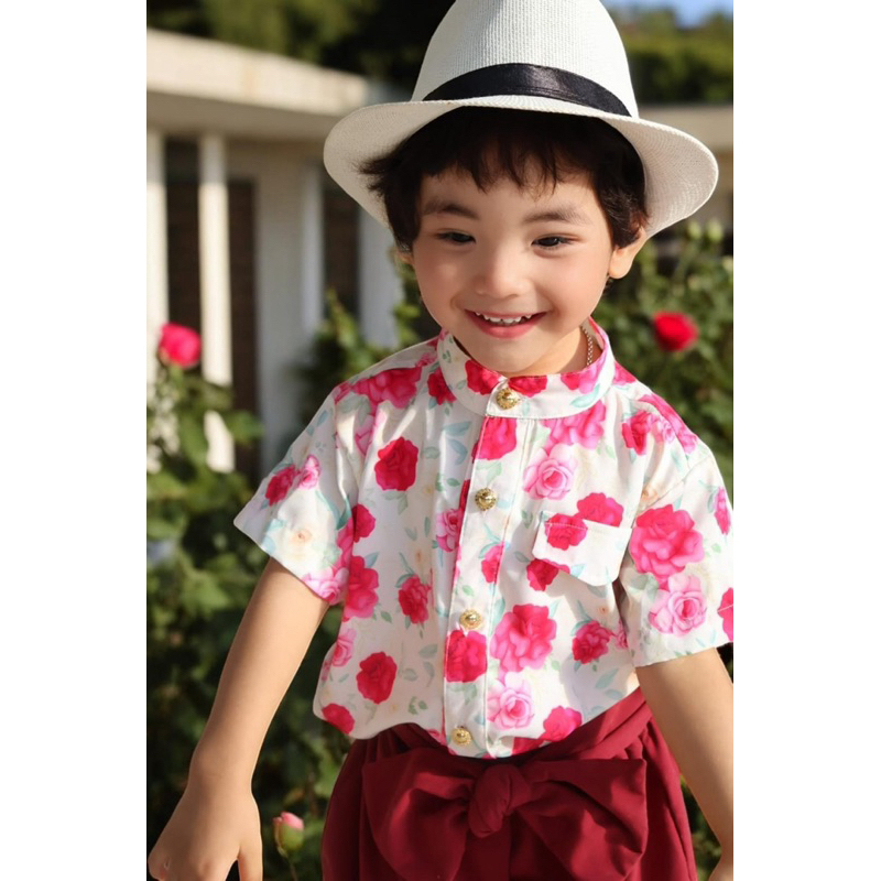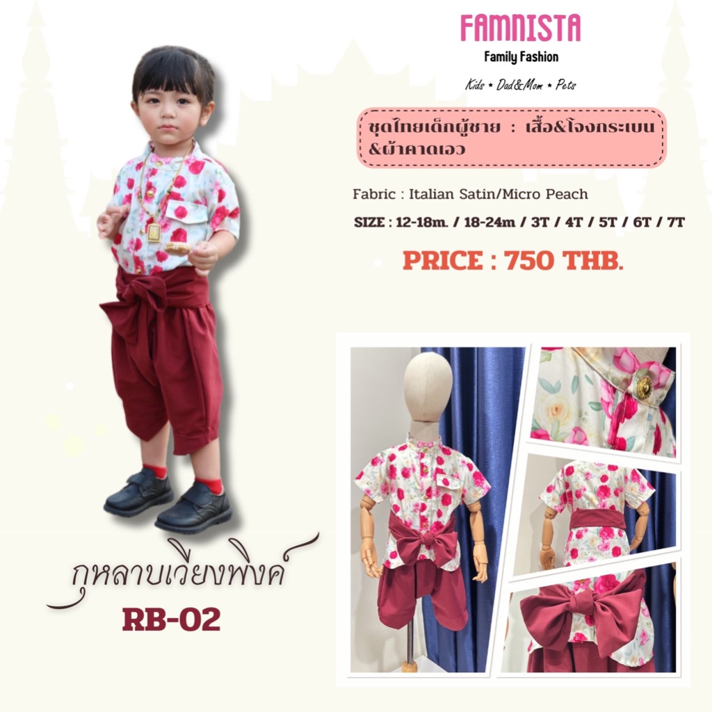 FAMNISTA ชุดไทยเด็กชาย /ผ้านุ่มลื่น ใส่สบาย ไม่ร้อน /ลายกุหลาบเวียงพิงค์