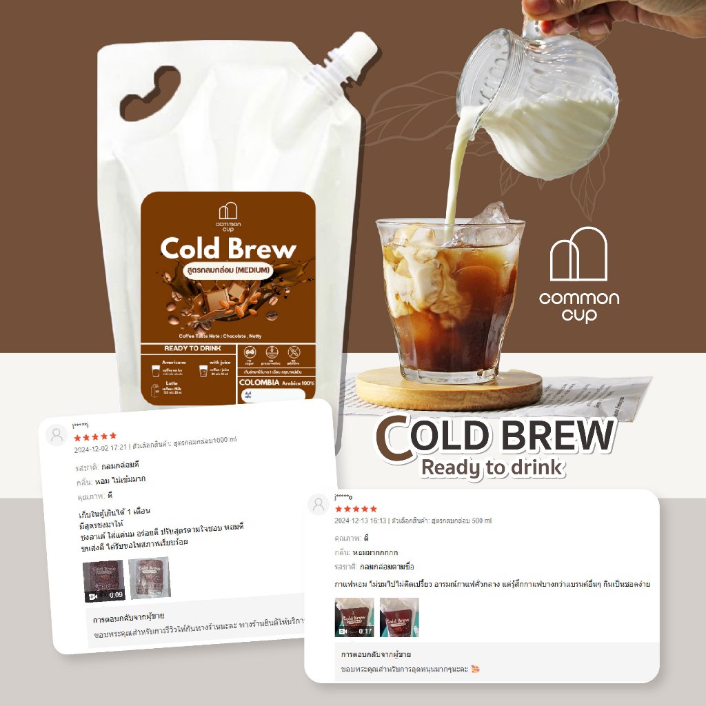 กาแฟ Cold brew สกัดเย็น พร้อมดื่ม สูตรกลมกล่อม หอมช็อคโกแล็ต ละมุน ดื่มง่าย ไม่ผสมน้ำตาล อาราบิก้า