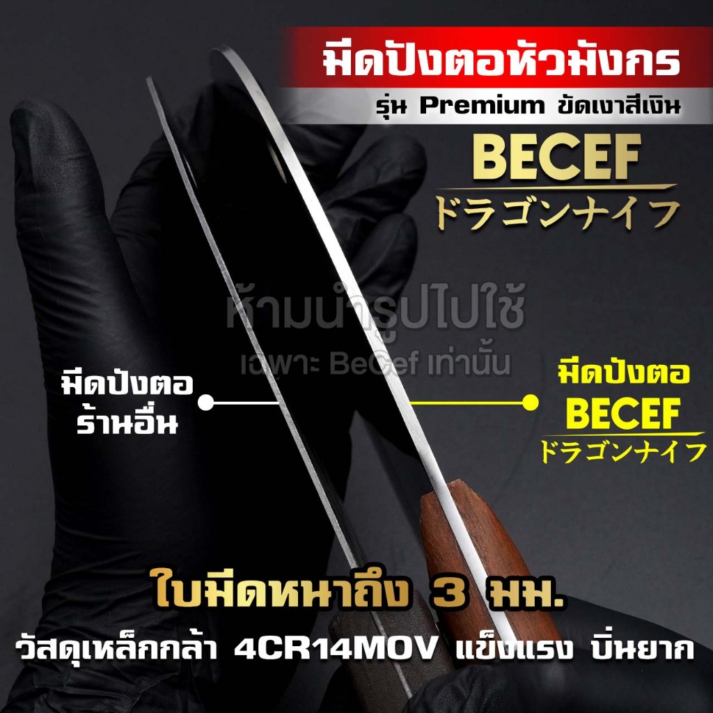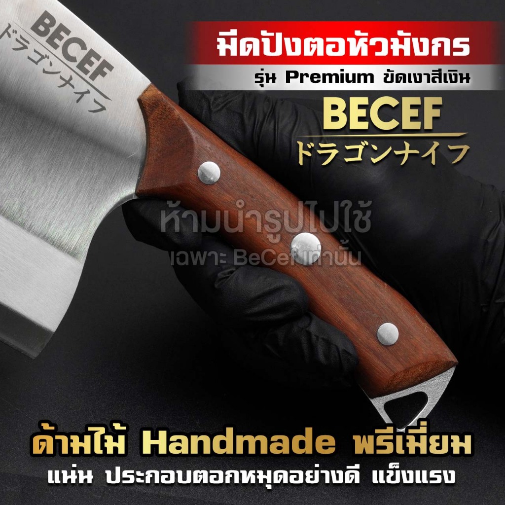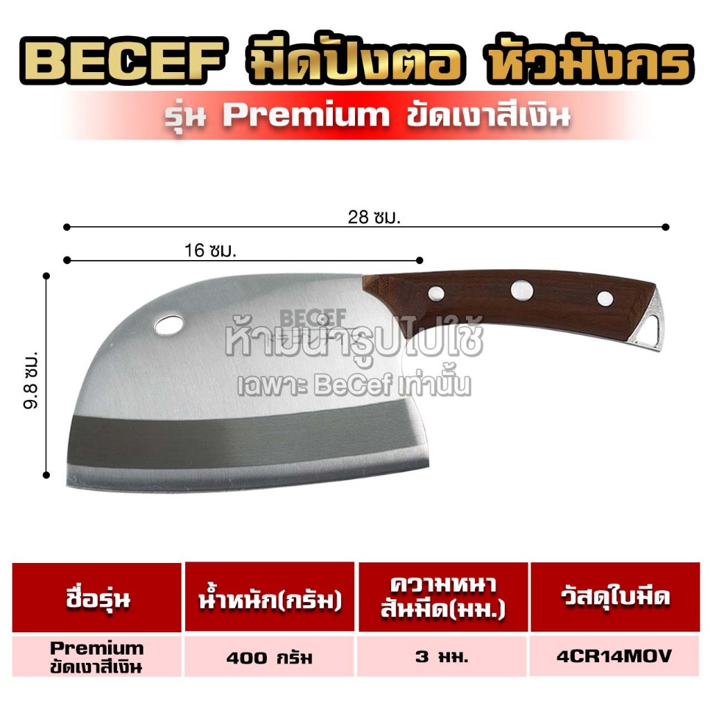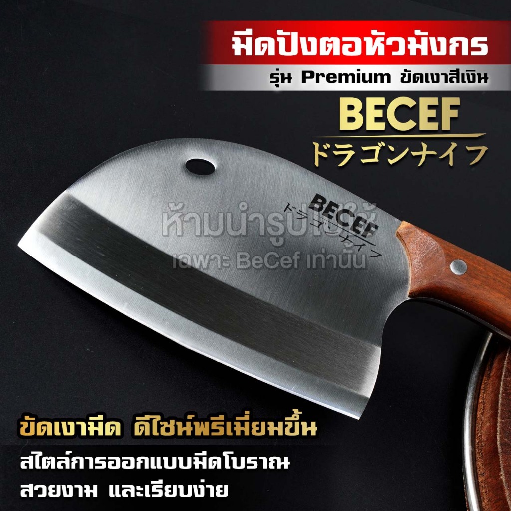 BECEF มีดปังตอ หัวมังกร รุ่น Premiumขัดเงาสีเงิน ใช้หั่น สับ มี สันหนา 3 มิล ใบมีดขัดเงา