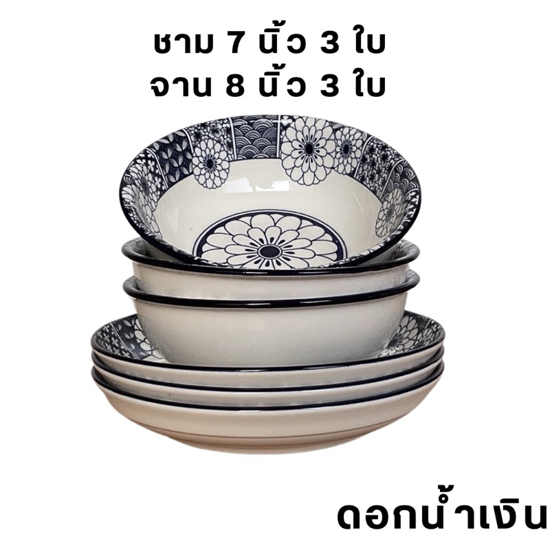M KITCHEN ชุดจานชามเซรามิค 6 ใบ มีหลายตัวเลือก จาน 6 ใบ, ชาม 6 ใบ, จาน และ ชาม 3 ใบ (A3)