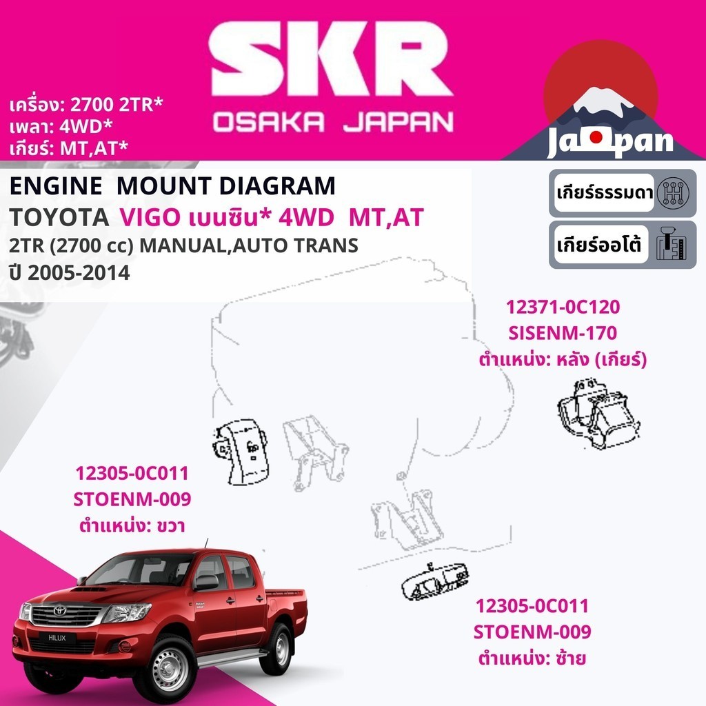 SKR Japan % ยาง แท่นเครื่อง แท่นเกียร์ Toyota Vigo เบนซิน 2.7 2TR 4WD AT,MT เกียร์ออโต้ ธรรมดา ปี 2005-2014 TO009,TO170