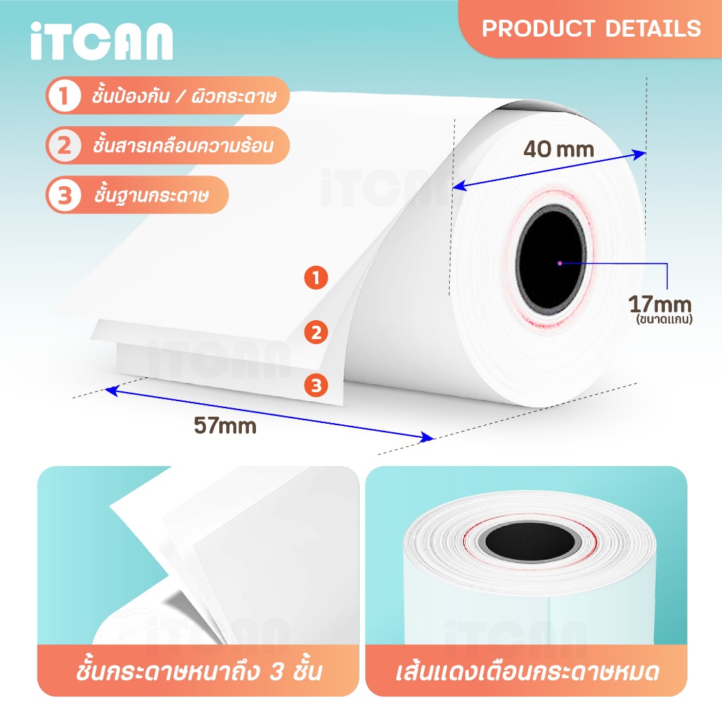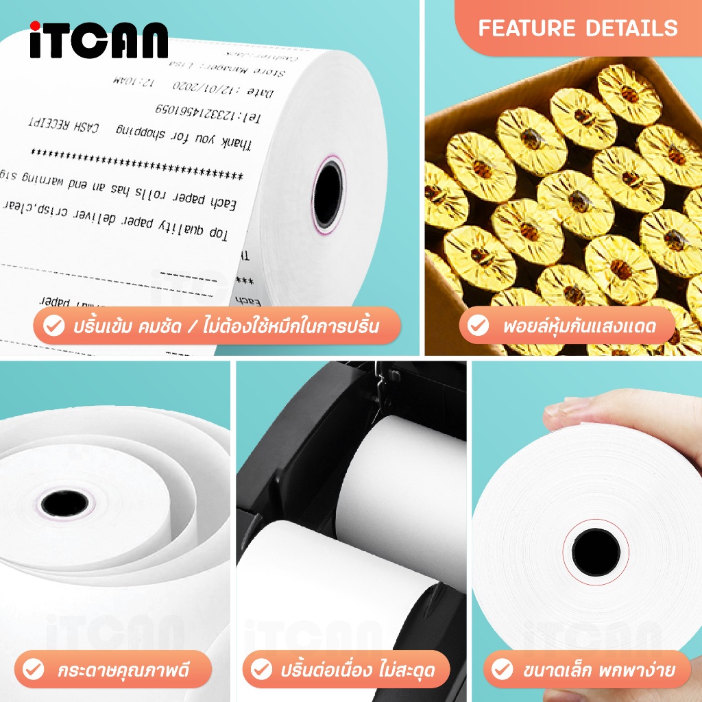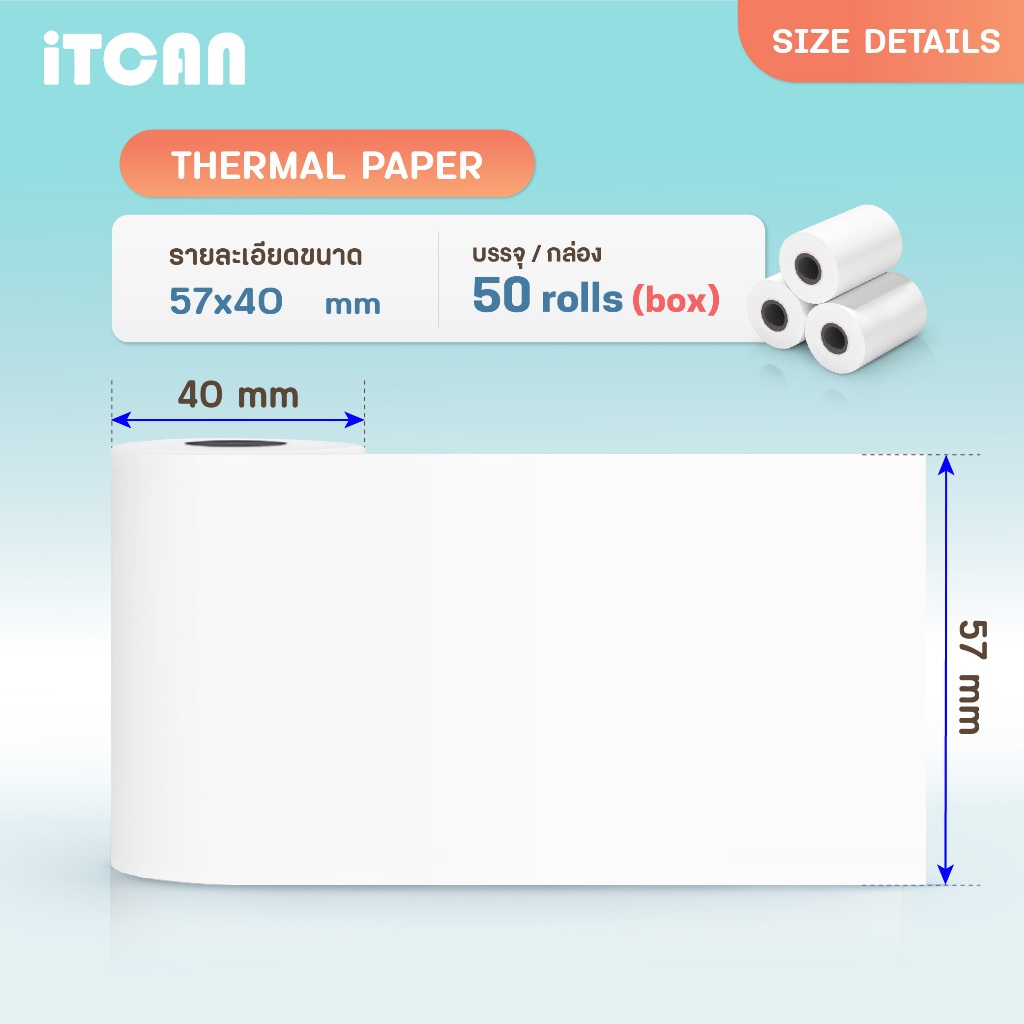 iTCAN 57x40 mm กระดาษใบเสร็จ 50 ม้วน กระดาษความร้อน Sunmi ใบเสร็จ foodpanda กระดาษบิล