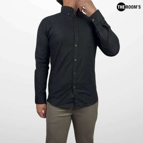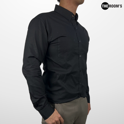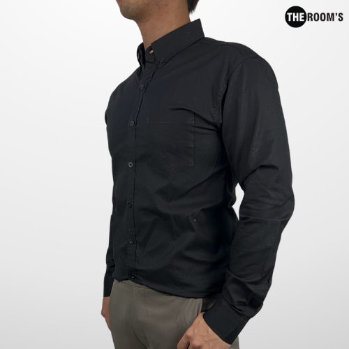 THE ROOM'S - เดอะรูม เสื้อเชิ้ต คอปก สีดำ Oxford แขนยาว รีดง่าย ใส่สบาย