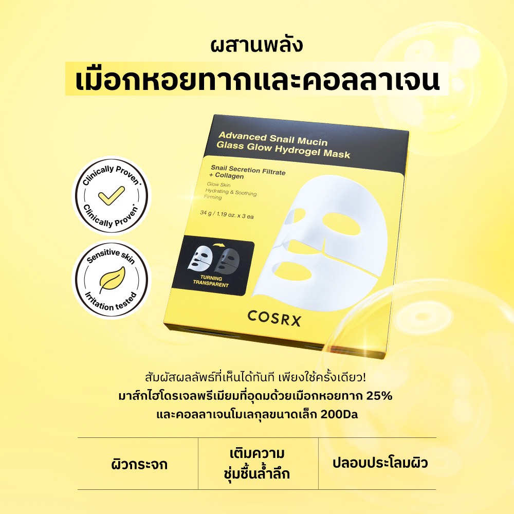 [COSRX OFFICIAL] Advanced Snail Mucin Glass Glow Hydrogel Mask แอดวานซ์ สเนล มิวซิน กลาส โกลว์ ไฮโดรเจล มาส์ก มาส์กหน้าผิวกระจก