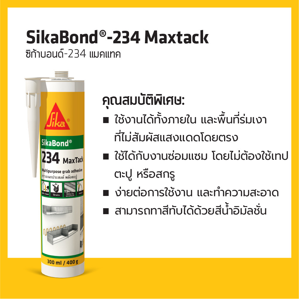 SIKA BOND-234 MAXTACK กาวตะปูสูตรน้ำพลังยึดติดสูง ยึดเกาะได้ดีกับวัสดุก่อสร้างหลายประเภท 75G 300ML