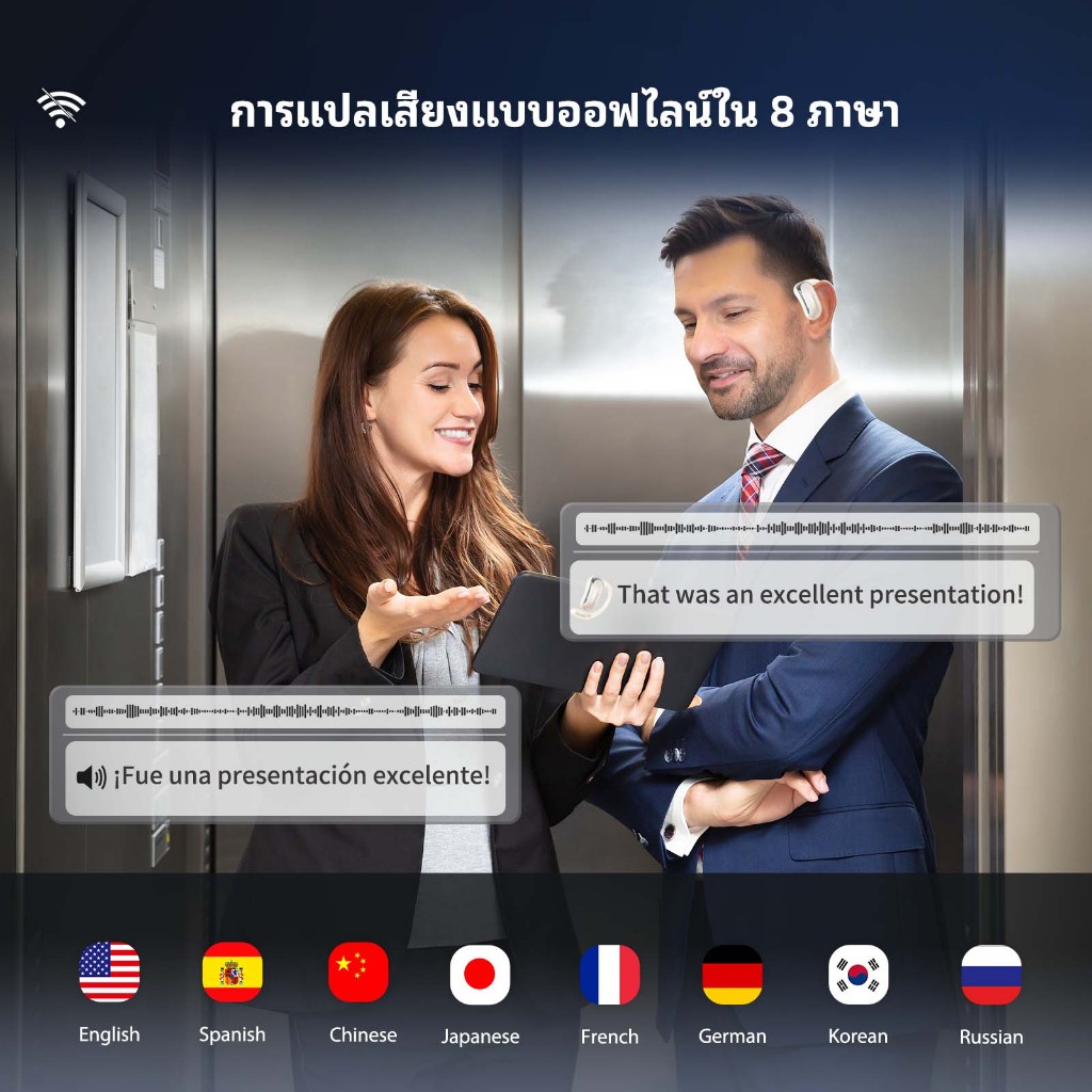Wooask F56 บลูทูธผู้แปลหูฟัง Multilingual OWS แบบเรียลไทม์ AI แปลหูฟังไร้สาย 144 ภาษาออนไลน์พร้อม 8 แพ็คออฟไลน์