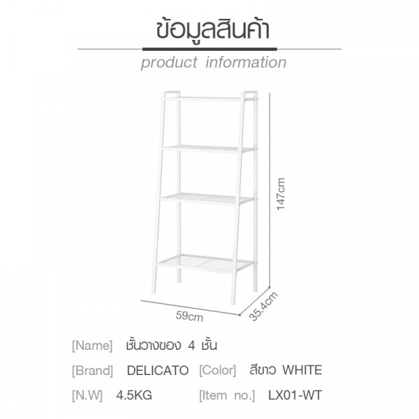 GlobalHouse DELICATO ชั้นวางของ 4 ชั้น LX01-WT 35.4x59x147ซม. สีขาว สินค้าของแท้คุณภาพดี