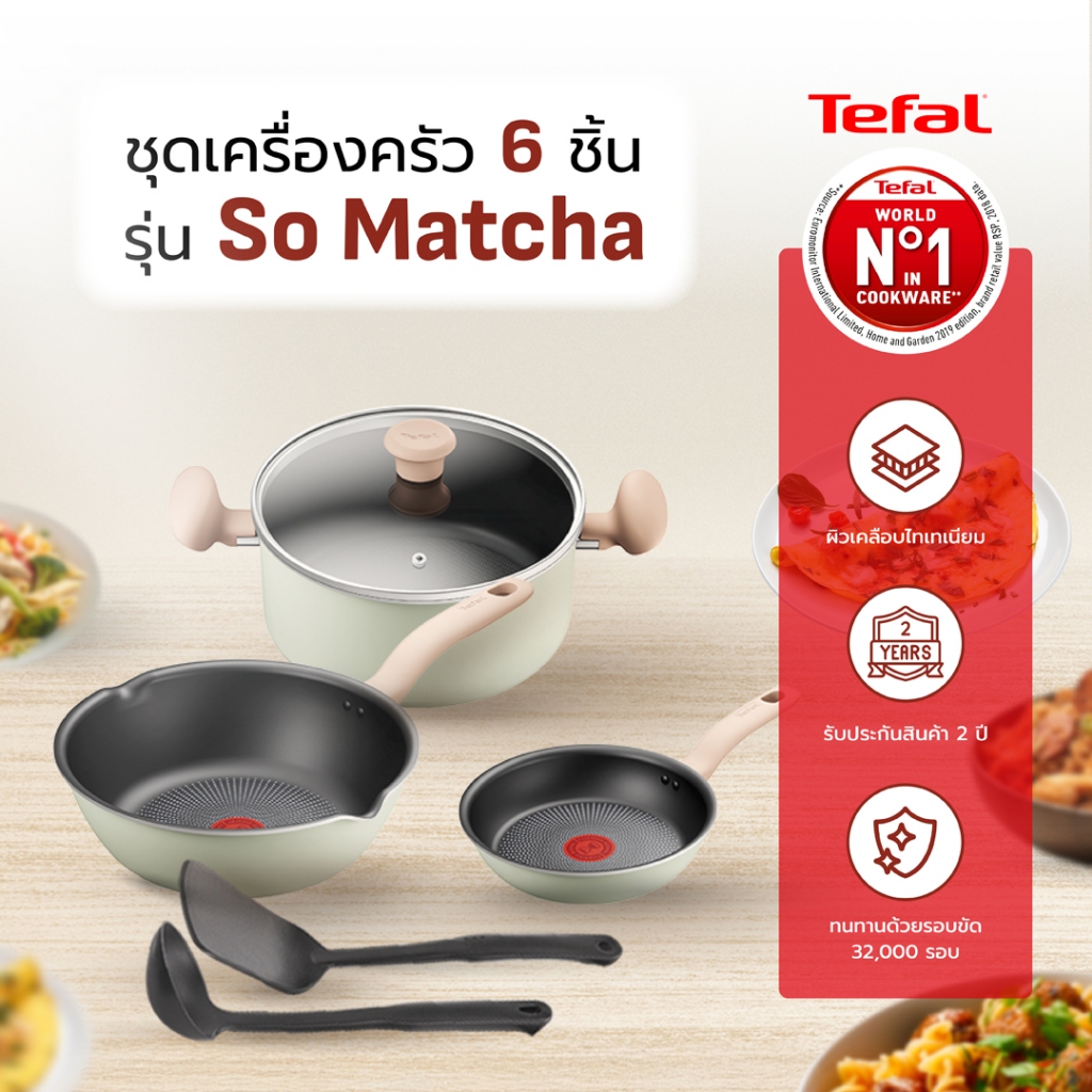 Tefal เครื่องครัว รุ่น So Matcha เคลือบสารกันติดไทเทเนียมทนทานนาน 2 เท่า