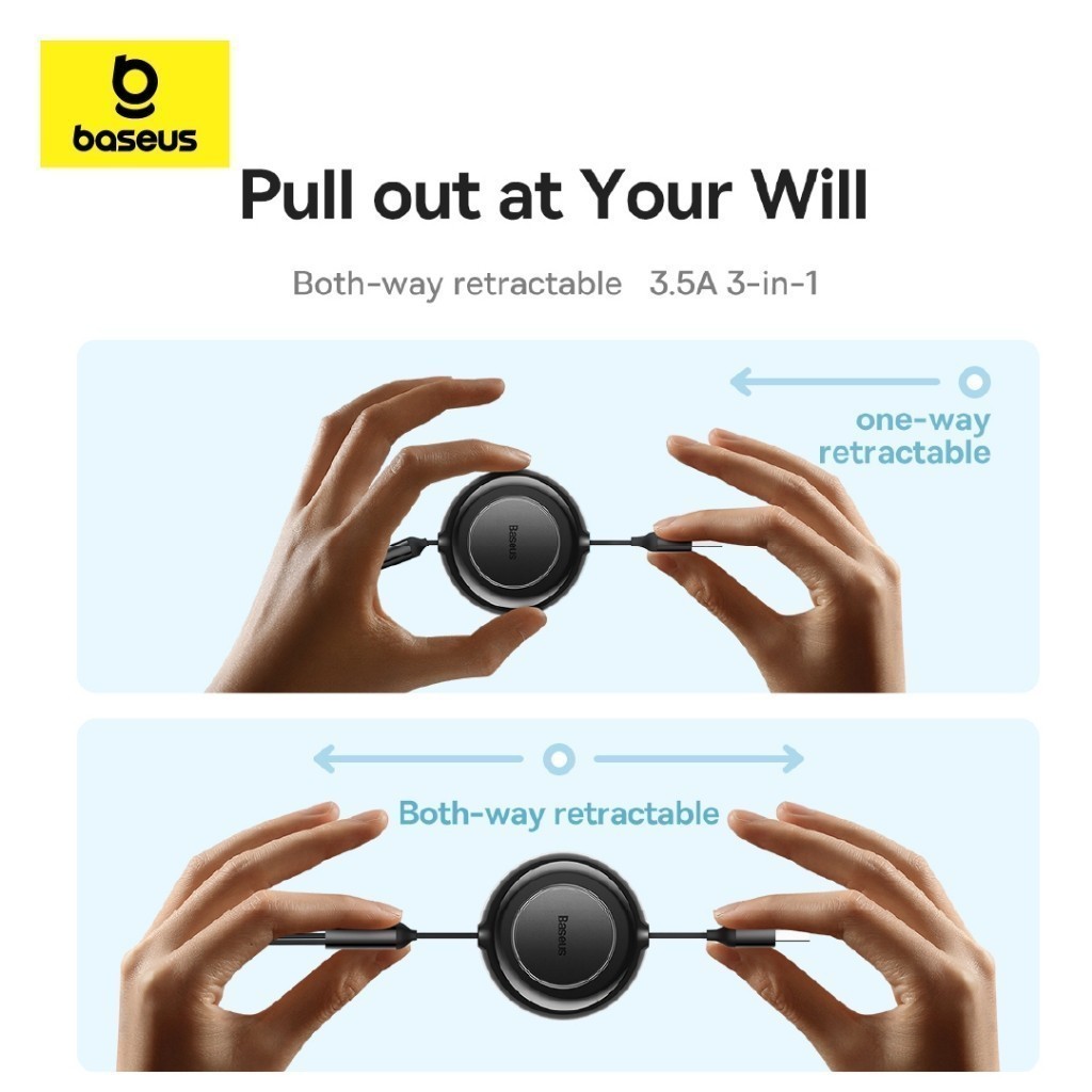 Baseus สายชาร์จเร็ว รุ่น Bright Mirror 2 Series Retractable 3-in-1 Fast Charging Data Cable USB/Type C to M+L+C