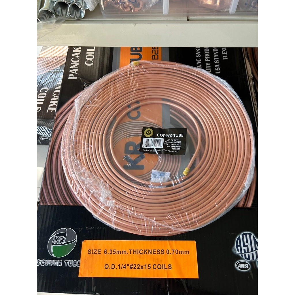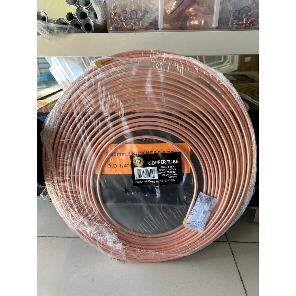 ท่อทองแดงแบบม้วน ขนาด 1/4 แบบหนา 0.7 มม.แบ่งขาย (เมตร)