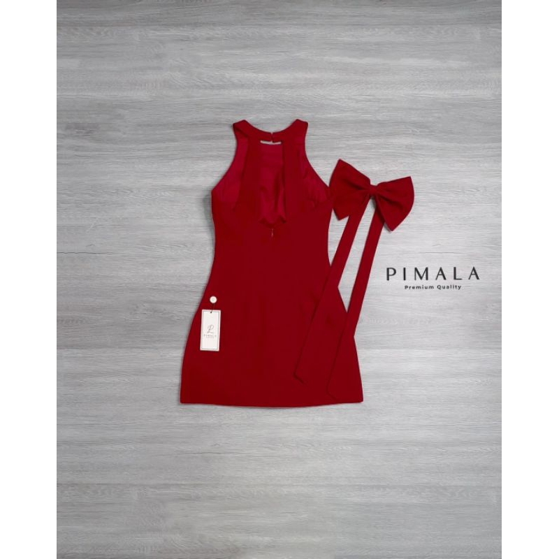 Pimala เดรส+เข็มกลัดโบว์ เดรสแขนกุดทรงสวยเรียบหรู ดีไซน์เป็นสายคู่ด้านหลังเซ็กซี่เบาๆมาคู่โบว์สายยาว