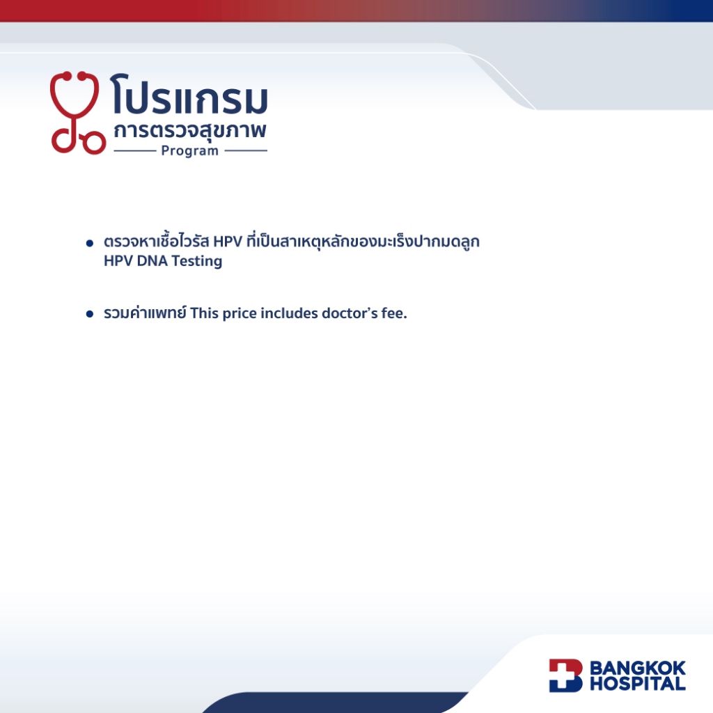 ตรวจหาเชื้อไวรัส HPV ที่เป็นสาเหตุหลักของมะเร็งปากมดลูก (HPV DNA TESTING) - Bangkok Hospital [E-Coupon]