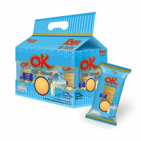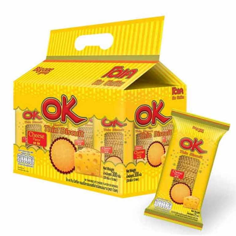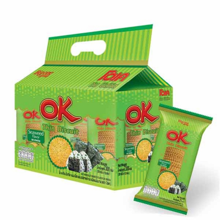 ขนม OK ทิน บิสกิตแผ่น ยกแพ็ค 12ซอง รส ชีส สาหร่าย วาซาบิ ช็อคโกแลต พิซซ่า นม