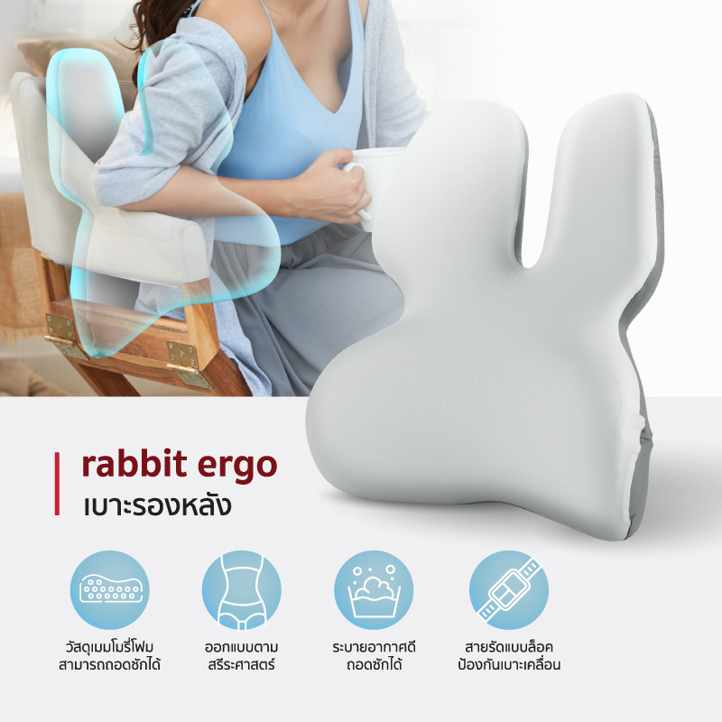 Fennix Ergocushion รุ่น rabbit ergo เบาะรองหลังเพื่อสุขภาพ ทรงสูง นุ่มคืนตัวดีมาก บรรเทาปวดหลังได้ดี