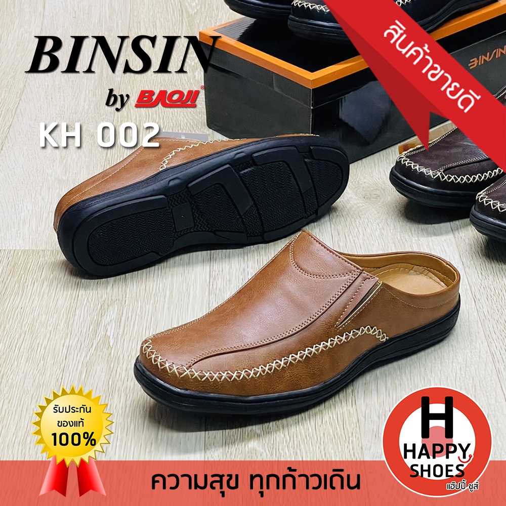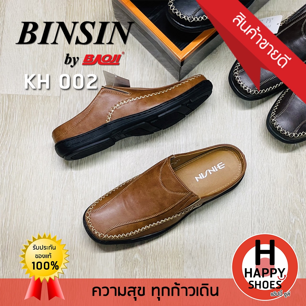 [🥇ของแท้100%🚚ส่งเร็ว🔢เบอร์40-45] BINSIN by BAOJI รุ่น KH002 รองเท้าหนังเปิดส้นชาย คัทชูเปิดส้น รองเท้าโลฟเฟอร์ นุ่มสบาย