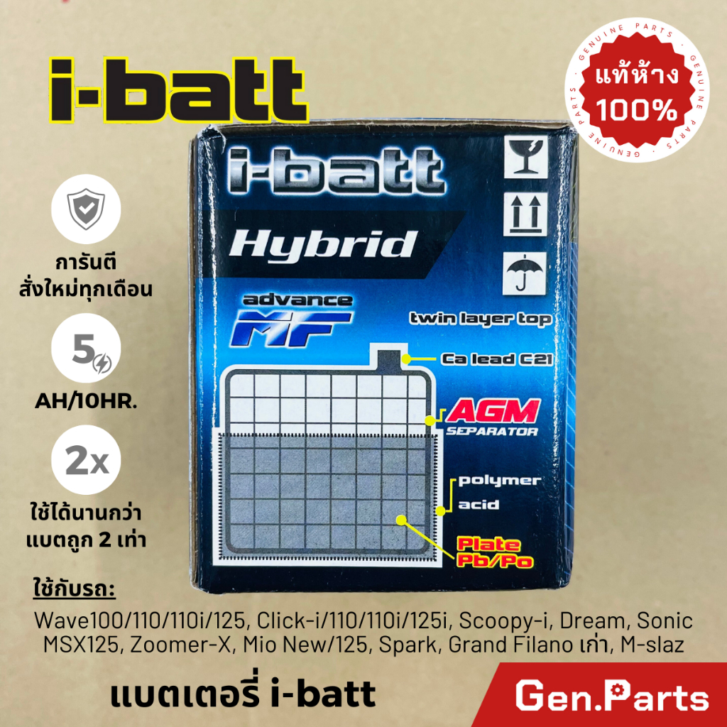 แบตเตอรี่ มอเตอร์ไซค์ Wave Dream Click Msx Scoopy Zoomer Fino i-batt YTZ5-SS 5แอมป์ แบตแห้ง 12V 5AH 5A YTZ5S เวฟ110i
