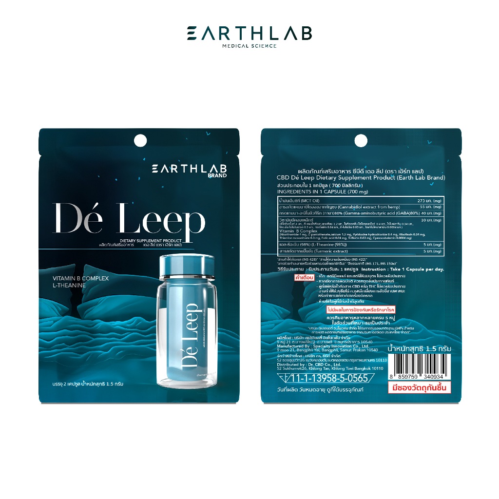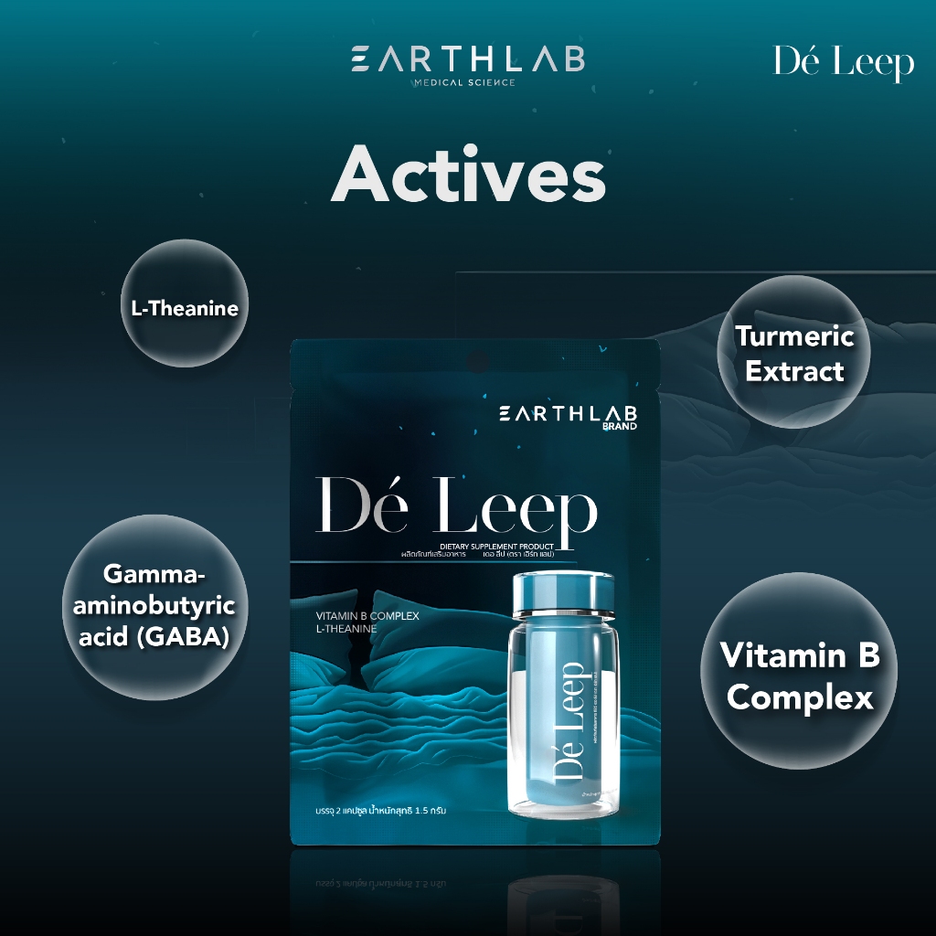 2 แถม 2 Earth Lab De Leep Softgel ซอง ( 2 เม็ด ) ผลิตภัณฑ์เสริมอาหาร หลับสบาย หลับง่าย FG0348